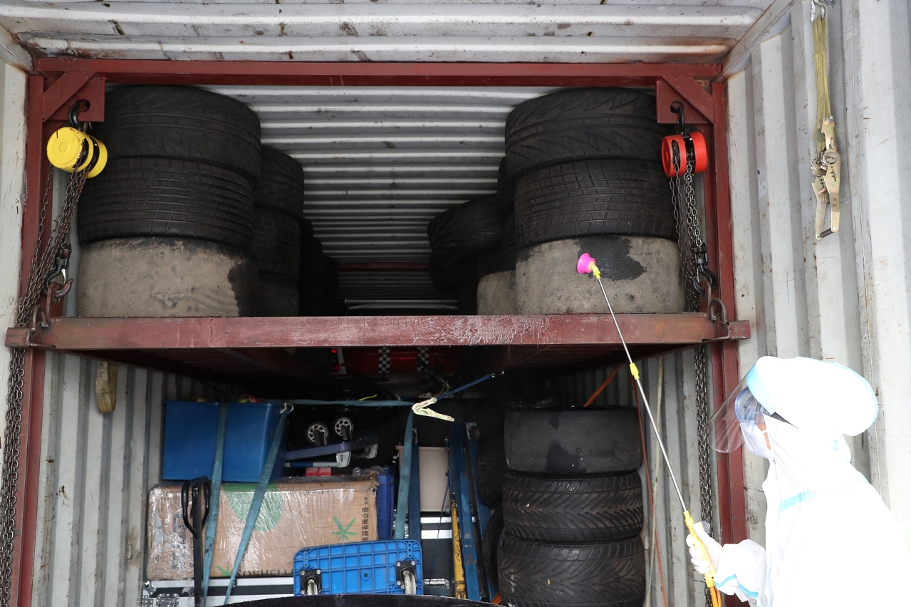 Os veículos concorrentes desta edição já chegaram ao territótio e começaram os trabalhos de inspecção. À chegada, o pessoal com vestuário de protecção procedeu de imediato à desinfectação dos veículos e dos objectos, para efectuar os devidos trabalhos de prevenção epidémica.