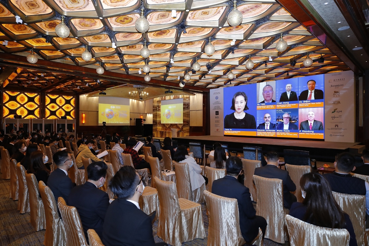 O Fórum de Economia de Turismo Global • Macau 2020 (Global Tourism Economy Forum - GTEF) terminou com sucesso ontem (dia 9) reunindo cerca de 50 dirigentes governamentais do Interior da China, de Macau e de vários países do mundo, assim como líderes de organizações internacionais de turismo e de empresas. Sob o tema “Solidariedade e Inovação: Remodelar o Turismo na Nova Economia Global”, esta edição do GTEF centrou-se na abordagem duma nova dinâmica e estratégia para reconstruir a confiança no turismo e remodelar a indústria turística. Pela primeira vez, o fórum foi realizado combinando um formato online e offline, para através da utilização de tecnologias inovadoras unir operadores turísticos de todo o mundo a partilhar novas ideias. As sessões online do GTEF decorridas ontem foram visualizadas por 420.000 pessoas de mais de meia centena de países e regiões.