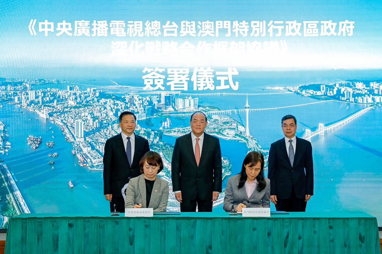 A cerimónia de assinatura decorreu esta tarde, na Sede do Governo, e foi testemunhada pelo Chefe do Executivo, pelo vice-ministro do departamento de publicidade do comité central do PCC, presidente e editor-chefe do China Media Group, Shen Haixiong, e pelo subdirefctor do Gabinete de Ligação do Governo Central na RAEM, Zhang Rongshun. A secretária para os Assuntos Sociais e Cultura do Governo da RAEM, Ao Ieong U, e a directora do gabinete para os assuntos de Hong Kong, Macau e Taiwan do China Media Group, Xing Bo, assinaram o acordo, em representação das duas partes.