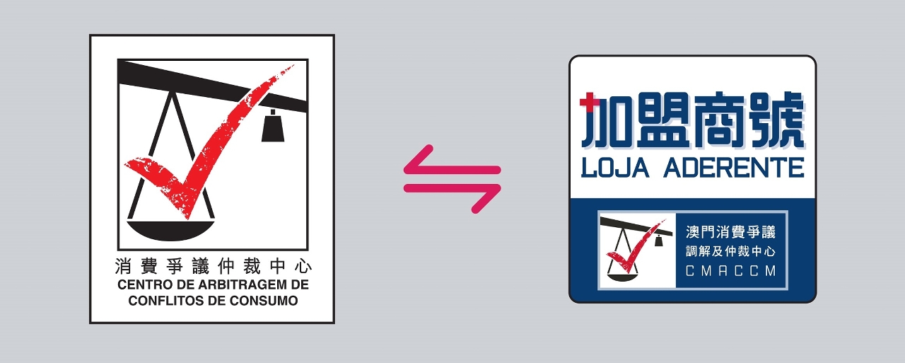 Tendo em conta a alteração da designação do Centro para “Centro de Mediação e de Arbitragem dos Conflitos de Consumo de Macau” a partir de 15 de Dezembro de 2020, o antigo logotipo de Loja Aderente continua a ter a mesma validade que o novo logotipo até outro aviso.