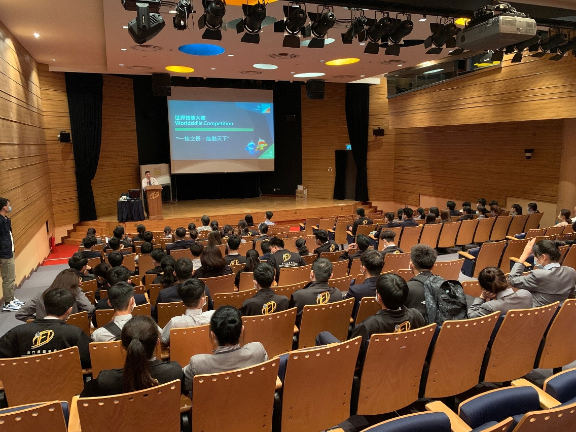 A fim de permitir aos alunos uma compreensão aprofundada da história do desenvolvimento e da dimensão da Competição Mundial, da situação das participações anteriores de Macau, bem como o conhecimento das aptidões profissionais dos diversos sectores, durante a visita ao campus escolar, foram exibidos filmes de curta-metragem sobre recrutamento de candidatos, destaques das competições anteriores e workshops das modalidades da competição. Através das explicações do pessoal da DSAL e dos especialistas das respectivas modalidades, os alunos obtiveram mais informações sobre a Competição Mundial de Aptidão Profissional, desde conhecer a competição até às modalidades em que Macau irá participar na próxima edição, incentivando, dessa forma, o interesse em participar na competição e encorajando os alunos a dar um passo para o caminho da aptidão profissional a fim de adquirirem habilidades para se tornarem os próximos artesãos do mundo.