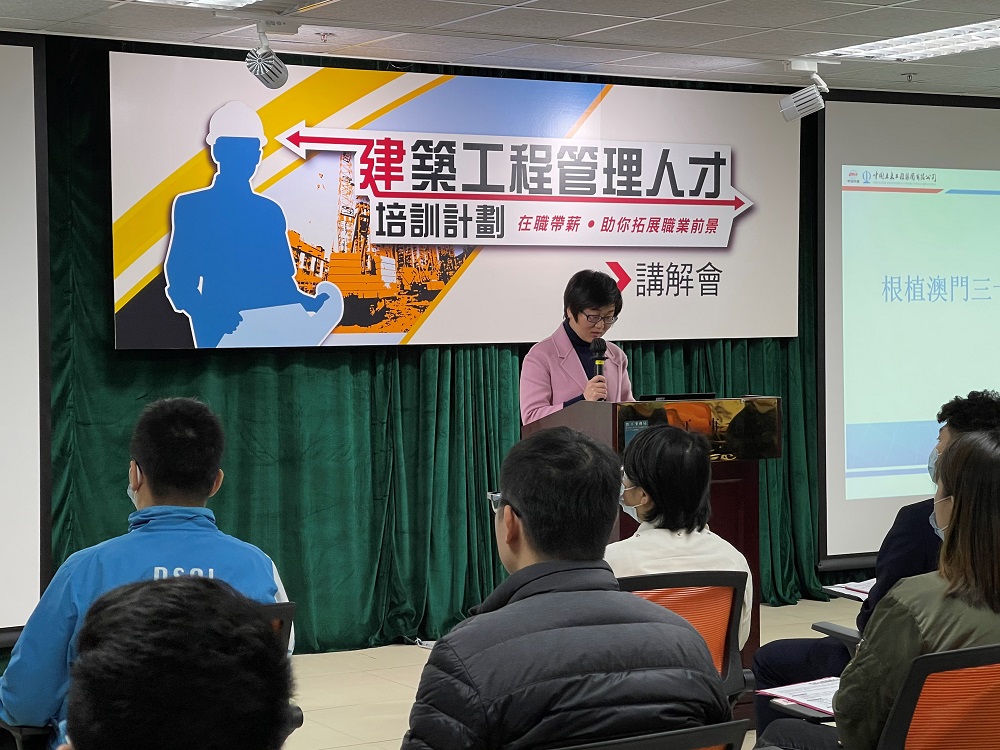 A fim de divulgar aquele Plano, a DSAL organizou, no dia 16 de Janeiro, uma sessão de esclarecimento para fazer a apresentação do conteúdo do Plano, tendo convidado representantes experientes do sector, nomeadamente Zhang Ru, gerente do departamento da China Civil Engineering Construction Corporation, Limitada, da Associação das Empresas Chinesas de Macau, e Tam Ka Wai, subgerente do departamento de recursos humanos da China Construction Engineering (Macau) Company Limited, para falarem sobre a situação do desenvolvimento do sector e para partilharem experiências. Ao mesmo tempo, foram ainda convidados outros representantes experientes do sector para esta sessão de esclarecimento, designadamente Shi Yanbo, assistente do gerente do departamento de recursos humanos da China Construction Engineering (Macau) Company Limited, Xiao Rongzhi, especialista da CEI Construction Investment Group Co., Ltd., Cao Yangnuo, gerente de negócios da Zhu Kuan Engineering Development Company Ltd, Song Mudan, especialista da China Zhong Ji Mechanical Industry Engineering (Macau) Company Limited e Zhang Yongrui, secretário da Associação das Empresas Chinesas de Macau, tendo ainda sido realizadas inscrições in loco.