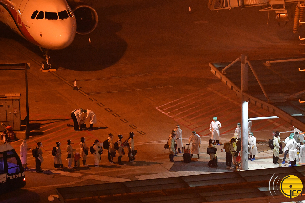 Um total de 109 passageiros partiu de Tóquio, nos voos da Air Macau, NX861 e NX867, com destino a Macau, cuja descolagem foi respectivamente, às 16h07 e 17h30 (hora do Japão). O voo número NX861 trouxe 31 passageiros do sexo masculino, 30 do sexo feminino e dois bebés, enquanto o voo número NX867 trouxe 24 passageiros do sexo masculino e 22 do sexo feminino. Todos os passageiros só puderam embarcar nos respectivos voos depois de vestirem o equipamento de protecção individual, incluindo o fato de protecção, máscara, viseira, e com a temperatura corporal normal, medida por duas vezes. Além disso, todos eles foram devidamente identificados com um cartão ao peito, onde consta o nome e o número do lugar no avião. Após o embarque, todos os passageiros tiveram de seguir, escrupulosamente, a ordem dos assentos marcados pela companhia aérea, por forma a minimizar o risco de infecção cruzada. Os dois voos aterraram, esta noite (21 de Janeiro), no Aeroporto Internacional de Macau às 19h51 e 21h18, respectivamente.