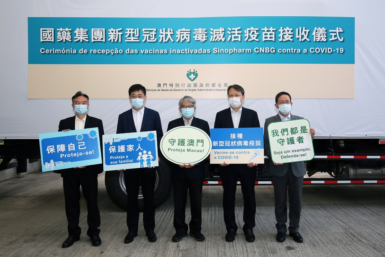 Com o forte apoio do Governo Central, o segundo lote de 400.000 doses de vacinas inactivadas contra a COVID-19 produzidas pela Sinopharm Group (China National Biotech Group, Beijing Institute of Biological Products) chegaram à RAEM, domingo (dia 28 de Fevereiro), tendo a entrega sido testemunhada pelo Subdirector do Departamento de Publicidade e Cultura do Gabinete de Ligação do Governo Popular Central na RAEM, Dr. Wan Sucheng.