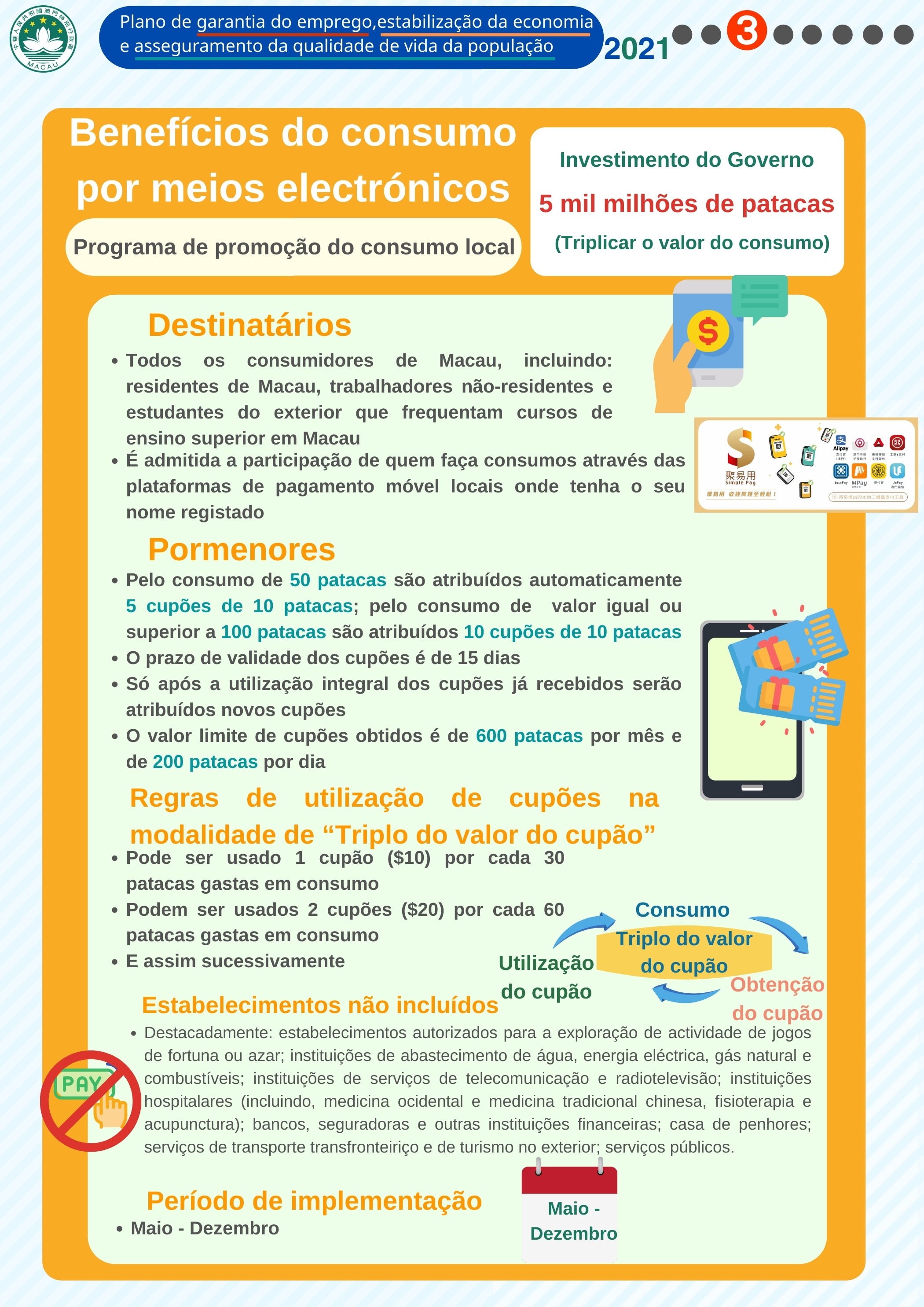- Benefícios do consumo por meios electrónicos (O Governo investe 5 mil milhões de patacas, visando triplicar o valor do consumo)