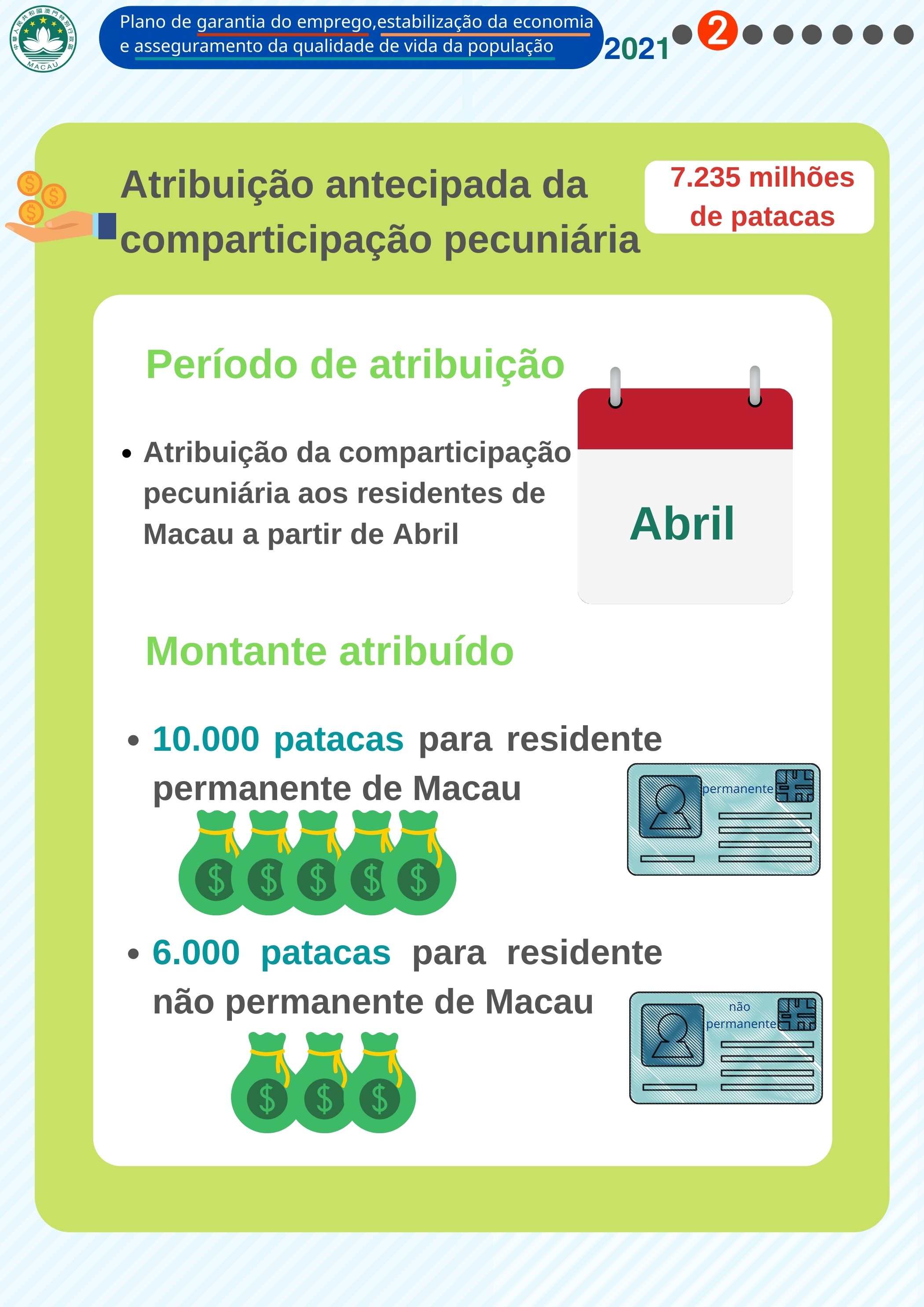 - Atribuição antecipada da comparticipação pecuniária (O Governo investe 7.235 milhões de patacas)