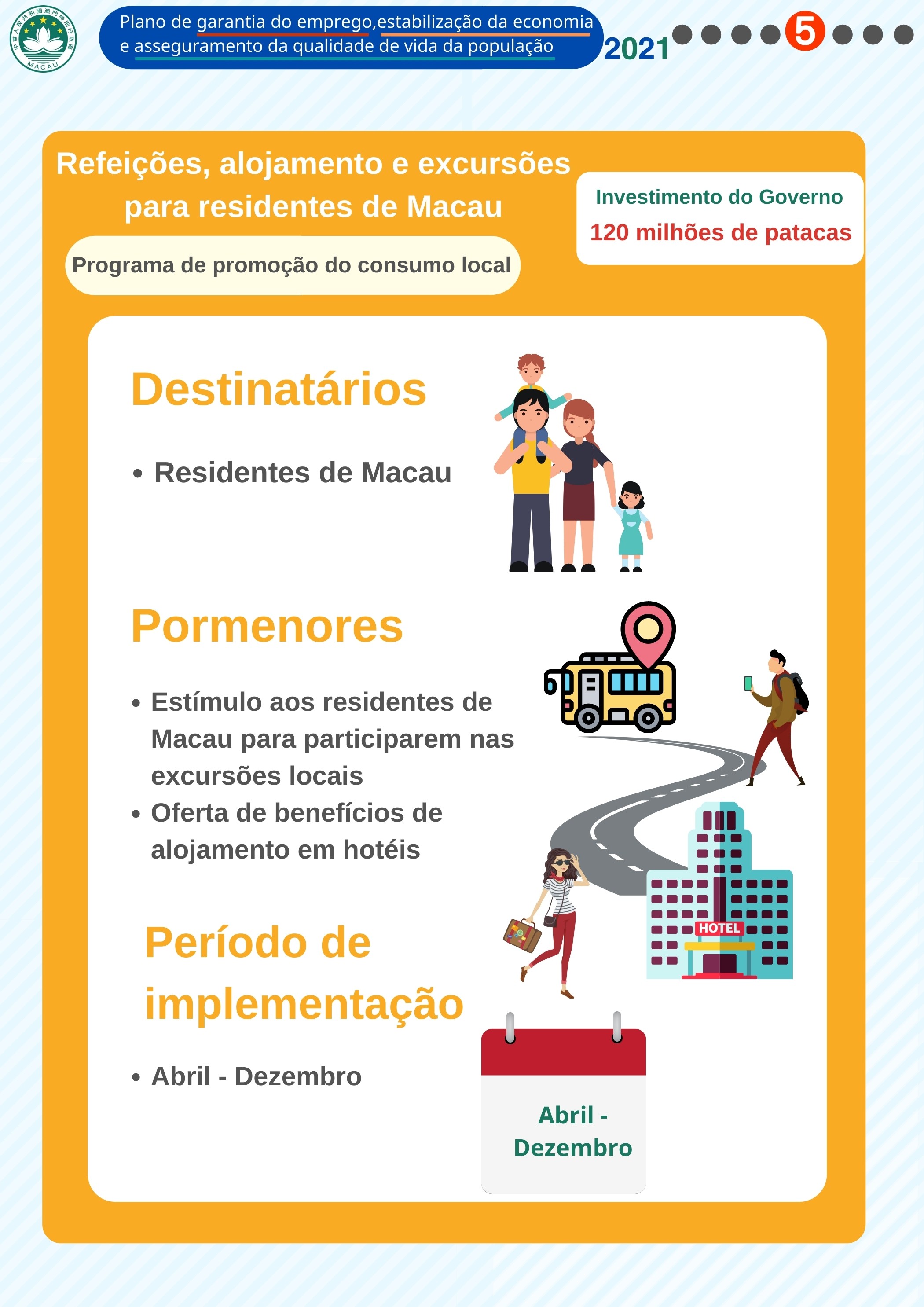 - Refeições, alojamento e excursões para residentes de Macau (O Governo investe 120 milhões de patacas)