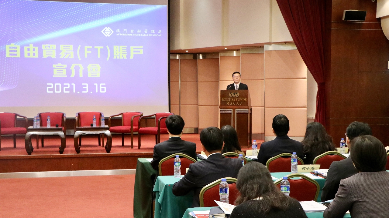 No seu discurso, o Presidente do Conselho de Administração da AMCM, Dr. Chan Sau San, salientou que a conta de comércio livre é um sistema inovador de gestão de conta, que visa, no Interior da China, a exploração das facilidades de investimento, de financiamento e das actividades cambiais transfronteiriços, proporcionando às empresas de Macau maiores facilidades em efectuar actividades cambiais transfronteiriças de fundos em moedas local e estrangeira na Zona de Comércio Livre do Interior da China e no exterior, através da abertura da conta de comércio livre junto dos 4 bancos pilotos de Guangdong. A ampliação do âmbito de utilização da conta de comércio livre permite fornecer mais suportes a nível financeiro para a construção da zona de cooperação aprofundada entre Guangdong e Macau.