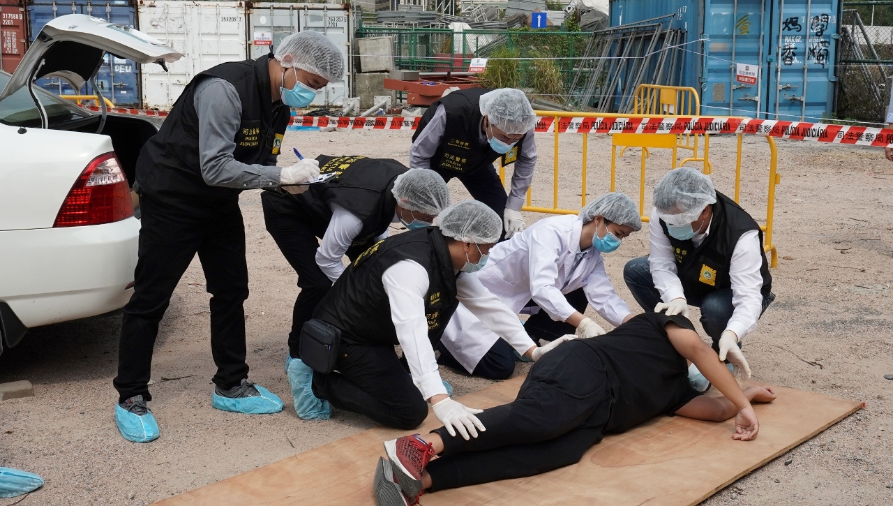 A simulação teve lugar na parte manhã de 25 de Março de 2021, num parque de estacionamento a céu aberto em Coloane. No cenário montado, a PJ foi informada que houve um caso de homicídio. Entretanto, no chão, deitado ao lado da porta do lugar do condutor de um carro estacionado no loca da ocorrência, descobriu-se um homem morto e com muito sangue. Havia ainda sinais notórios de luta.