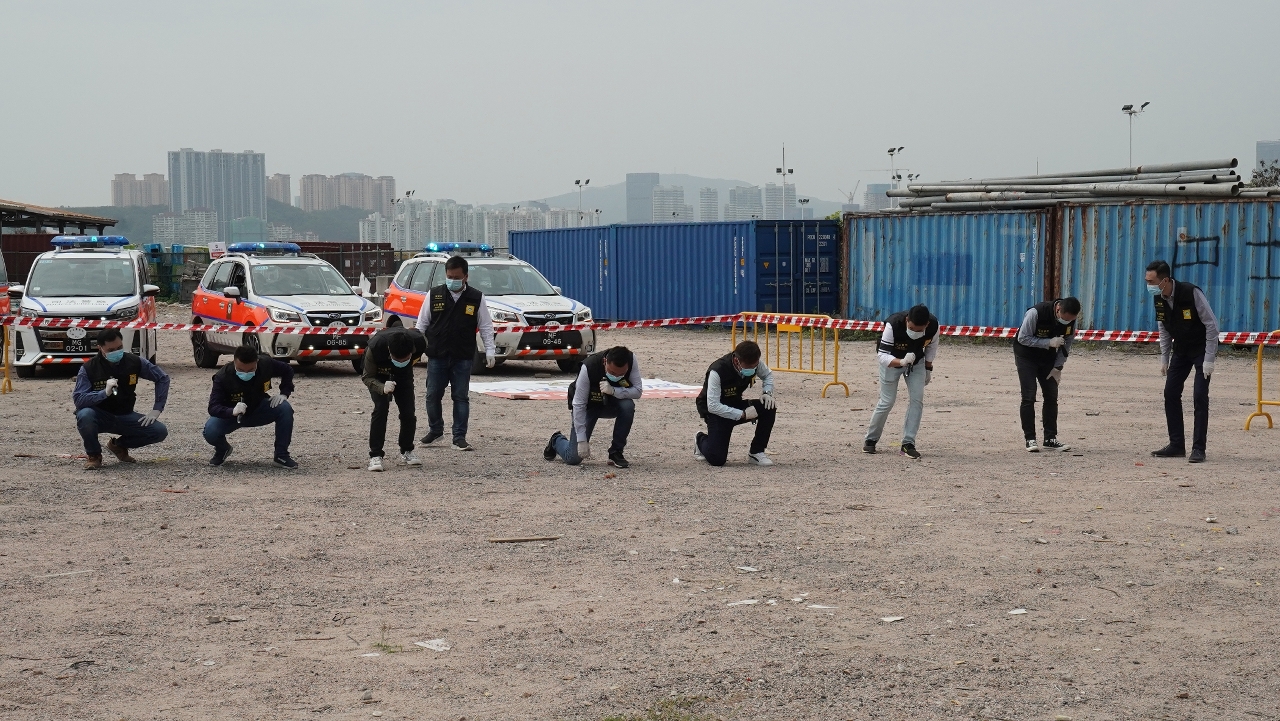 Para a realização deste ensaio, participaram várias subunidades da PJ, incluindo as subunidades subordinadas ao Departamento de Investigação Criminal como a Divisão de Investigação e Combate ao Tráfico de Estupefacientes, a Secção de Investigação de Crimes Contra a Pessoa e o Núcleo de Denúncias e Intervenção, a Divisão de Inspecção ao Local do Crime do Departamento de Ciências Forenses, e as subunidades do Departamento de Informações e Apoio. O ensaio, com a duração de 2 horas, realizou-se com sucesso tendo nele participado mais de 60 agentes. O mesmo serviu para reforçar a capacidade do pessoal das várias subunidades da PJ em relação à investigação, comunicação, coordenação e prestação de apoio, melhorando a eficiência do trabalho da execução da lei da PJ e tendo alcançado os seus objectivos.