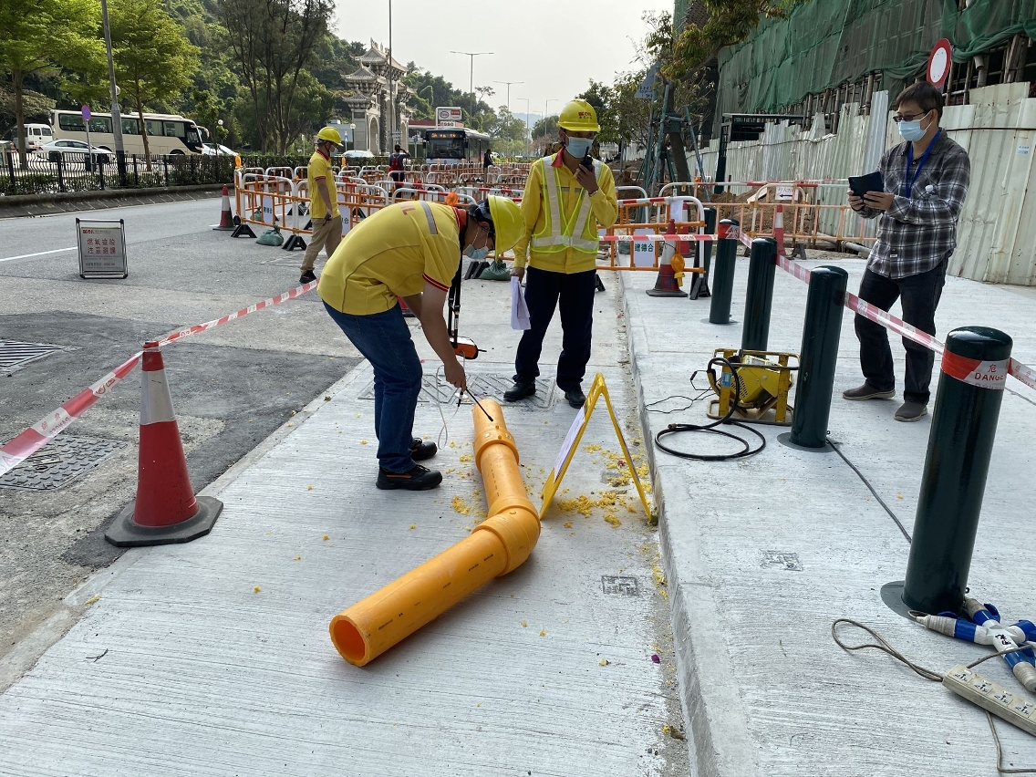 O outro exercício foi realizado no final de Março, e simulou uma fuga de gás no gasoduto de gás natural que percorre a Estrada de Seac Pai Van, em Coloane, cuja origem se deveu a danos causados por terceiros durante a execução de obras. Logo que o alerta foi recebido, o pessoal de serviço da DSPA e das operadoras deslocou-se, de imediato, ao local para inspeccionar e avaliar o sucedido, tendo, de seguida, accionado o plano previsto de contingência, suspendendo, imediatamente, o fornecimento de gás natural e adoptando medidas de fornecimento temporário de gás à zona afectada, bem como procedendo às reparações de emergência no local e à experimentação da execução de soldadura de tubos de polietileno.