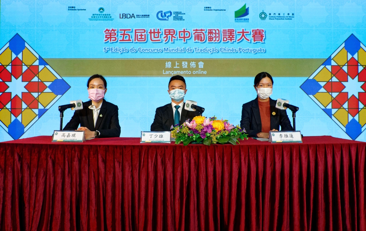 A conferência de imprensa do “5.º Concurso Mundial de Tradução Chinês-Português” decorreu online, no dia 14 de Abril, pelas 17h00, tendo contado com a presença do Subdirector da DSEDJ, Teng Sio Hong, e da Vice-Presidente do IPM, Lei Ngan Lin, nesta apresentação tendo sido divulgado o estatuto do concurso. Na mesma conferência de imprensa, Teng Sio Hong afirmou que a tradução das línguas chinesa e portuguesa é uma das disciplinas tradicionais com vantagens no ensino superior de Macau, por ter vasta experiência, excelentes professores, bom ambiente de aprendizagem linguística e ampla rede de contactos com o exterior. A construção da “Base de Formação de Quadros Qualificados Bilingues em Chinês e Português” é um dos principais posicionamentos de desenvolvimento da RAEM. O Governo da RAEM apoia, de forma activa, as instituições de ensino superior na realização de diversos projectos e actividades de formação de quadros qualificados bilingues em chinês e português, empenhando-se na formação de talentos, proporcionando um forte apoio para a promoção contínua e o aprofundamento da cooperação económica e comercial entre a China e os Países de Língua Portuguesa. A Vice-Presidente do IPM, Lei Ngan Lin, referiu que o Concurso Mundial de Tradução Chinês-Português demonstra plenamente as vantagens de Macau como “Plataforma entre a China e os Países de Língua Portuguesa” e como “Base de Formação de Quadros Bilingues de Chinês e Português”. O Curso Mundial de Tradução Chinês-Português, para além de ser um local onde se reúnem os talentos bilingues chinês-português e proporcionar aos professores e alunos uma plataforma de intercâmbio linguístico e cultural entre a China e os Países de Língua Portuguesa, desempenha ainda um papel positivo na promoção e desenvolvimento de estudo das línguas portuguesa e chinesa que se estende ao mundo inteiro, servindo também para impulsionar e reforçar o intercâmbio e a cooperação amigável entre a China e os Países de Língua Portuguesa.
