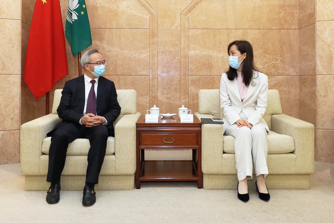 A Secretária para os Assuntos Sociais e Cultura, Ao Ieong U, teve, hoje (dia 22), na Sede do Governo, um encontro com a delegação chefiada pelo membro do comité permanente e chefe do Departamento da Frente Unida do Partido Comunista da China (PCC) do município de Hangzhou, Chen Xinhua, em que foram trocadas impressões sobre o reforço da cooperação na educação entre Macau e Hangzhou, a promoção do intercâmbio entre os jovens das duas partes e a realização de estágios para estudantes do ensino superior, entre outros assuntos. Após o encontro, os representantes de Macau e de Hangzhou assinaram o Memorando de Cooperação entre Hangzhou e Macau no Desenvolvimento da Educação e no Intercâmbio de Jovens Estudantes, bem como o Memorando de Cooperação nas áreas da Educação e da Ciência.