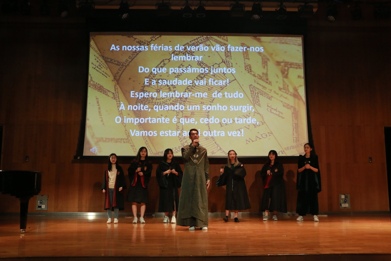 O evento começou com uma canção portuguesa cantada pelos estudantes, seguida de um recital de poesia, uma peça de teatro e uma animada simulação de debate levada a cabo pela Equipa de Debate Português, entre outras atuações. Dezenas de professores e jovens alunos encheram o auditório, aplaudindo e rindo, criando uma atmosfera de felicidade e harmonia.