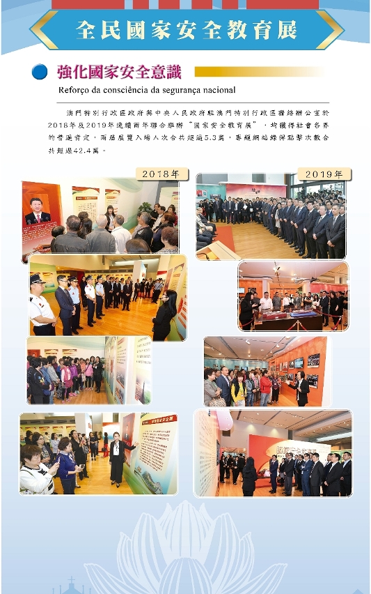 O capítulo «Segurança nacional, uma responsabilidade de toda a população» regista os vários trabalhos de sensibilização e educação que o governo da RAEM, o Gabinete de Ligação do Governo Popular Central na RAEM e toda a sociedade têm feito, especialmente no reforço da consciência da segurança nacional, defensa da autoridade da Constituição e da Lei Básica de Macau, incentivo da educação sobre a situação da Pátria, valorização da educação cívica, bem como, promoção do espírito de amor à Pátria e de amor a Macau.