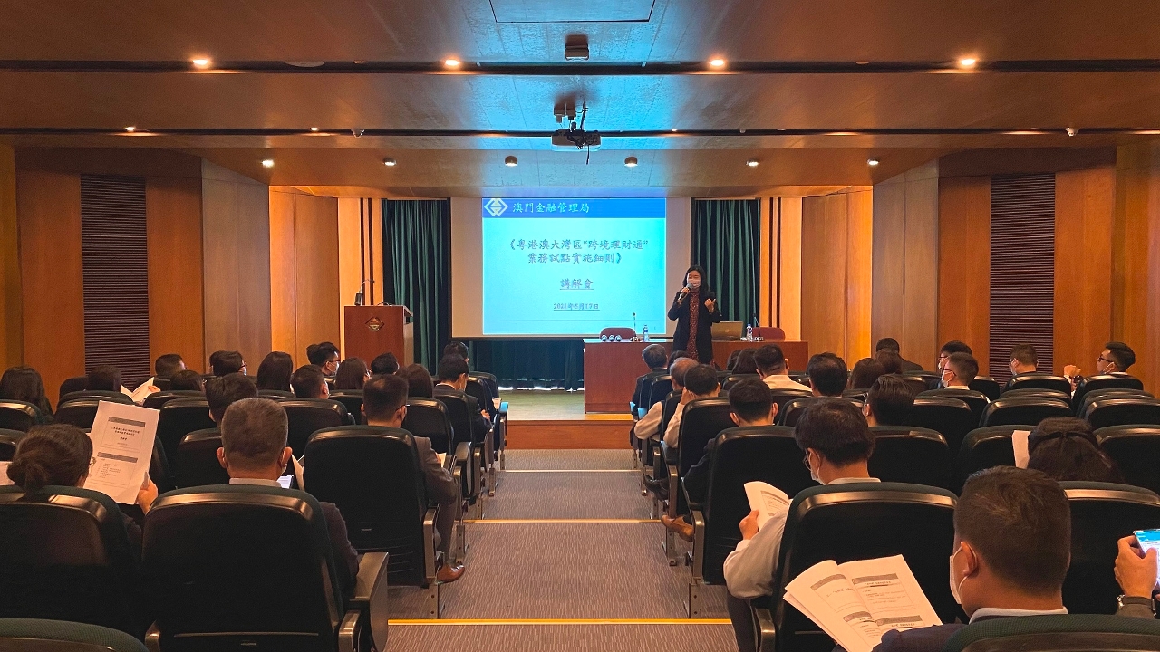 Com o intuito de apoiar os bancos que pretendem desenvolver as actividades de “Gestão Financeira Transfronteiriça” para assegurar melhor os trabalhos preparatórios, a AMCM emitiu, em 10 de Maio, a minuta da “Regulamentação do desenvolvimento, na Grande Baía Guangdong-Hong Kong-Macau, de actividades no âmbito do Projecto-piloto denominado por “Gestão Financeira Transfronteiriça””, tendo organizado hoje (dia 17) a 2ª sessão de esclarecimento de actividades para o sector, permitindo que os bancos conheçam melhor os requisitos sobre a regulamentação.