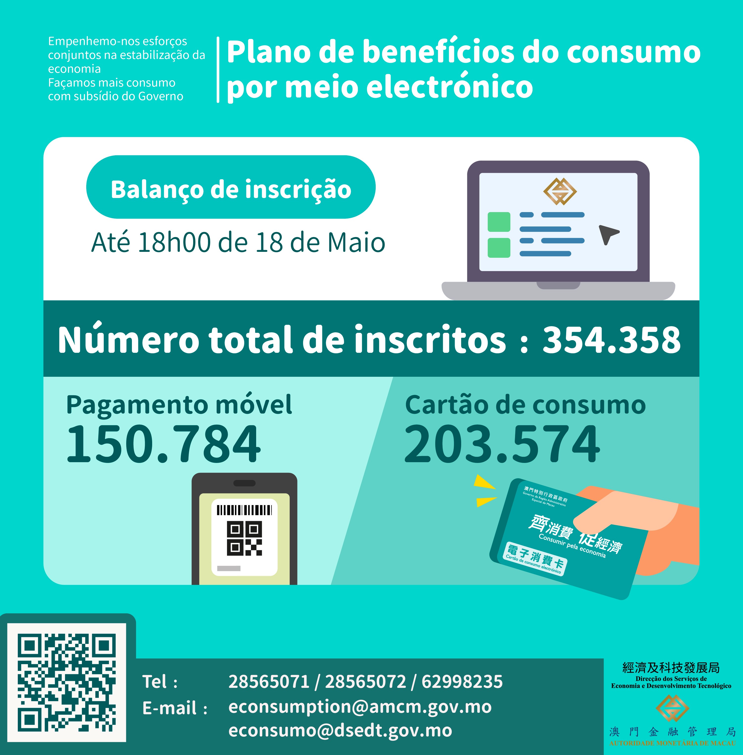 A inscrição online do “Plano de benefícios de consumo por meio electrónico” esteve aberta em 7 de Maio. Até às 18H00 de ontem (dia 18), mais de 350.000 residentes já concluíram a inscrição, dos quais cerca de 150.000 optaram por “pagamento móvel” e cerca de 200.000 por “cartão de consumo”.