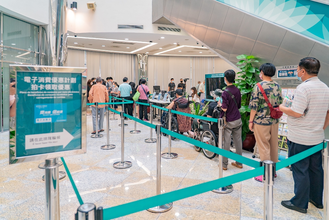 Hoje (dia 24) é o primeiro dia do recebimento dos “benefícios de consumo por meio electrónico”. A partir das 9H00, os residentes podem receber sucessivamente o pacote dos benefícios de consumo (montante inicial de 5.000 patacas e montante para desconto imediato de 3.000 patacas), o qual poderá ser utilizado a partir de 1 de Junho.
