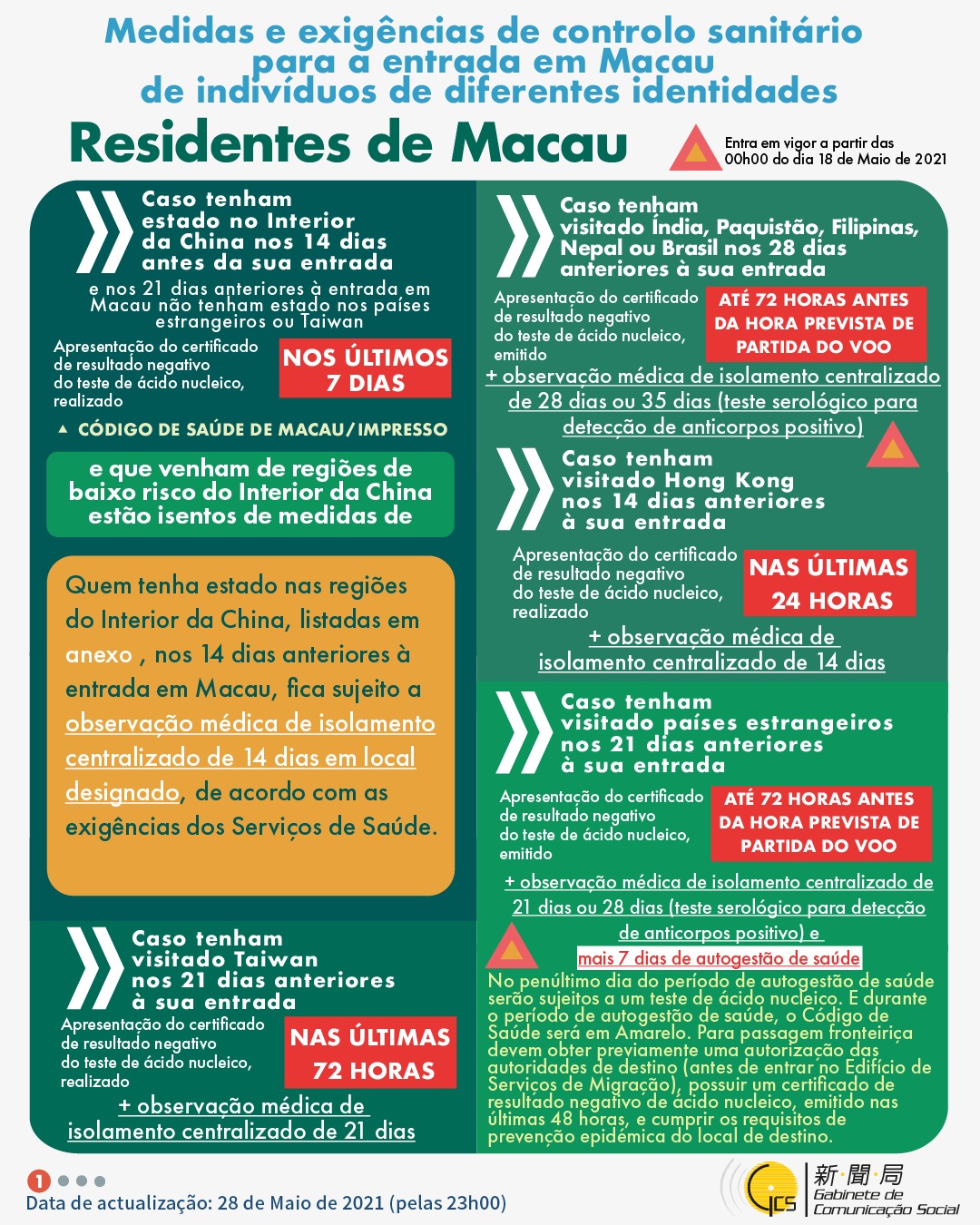 (Infografia)Medidas e exigências de controlo sanitário para a entrada em Macau de indivíduos de diferentes identidades, actualizadas no dia 28 de Maio de 2021