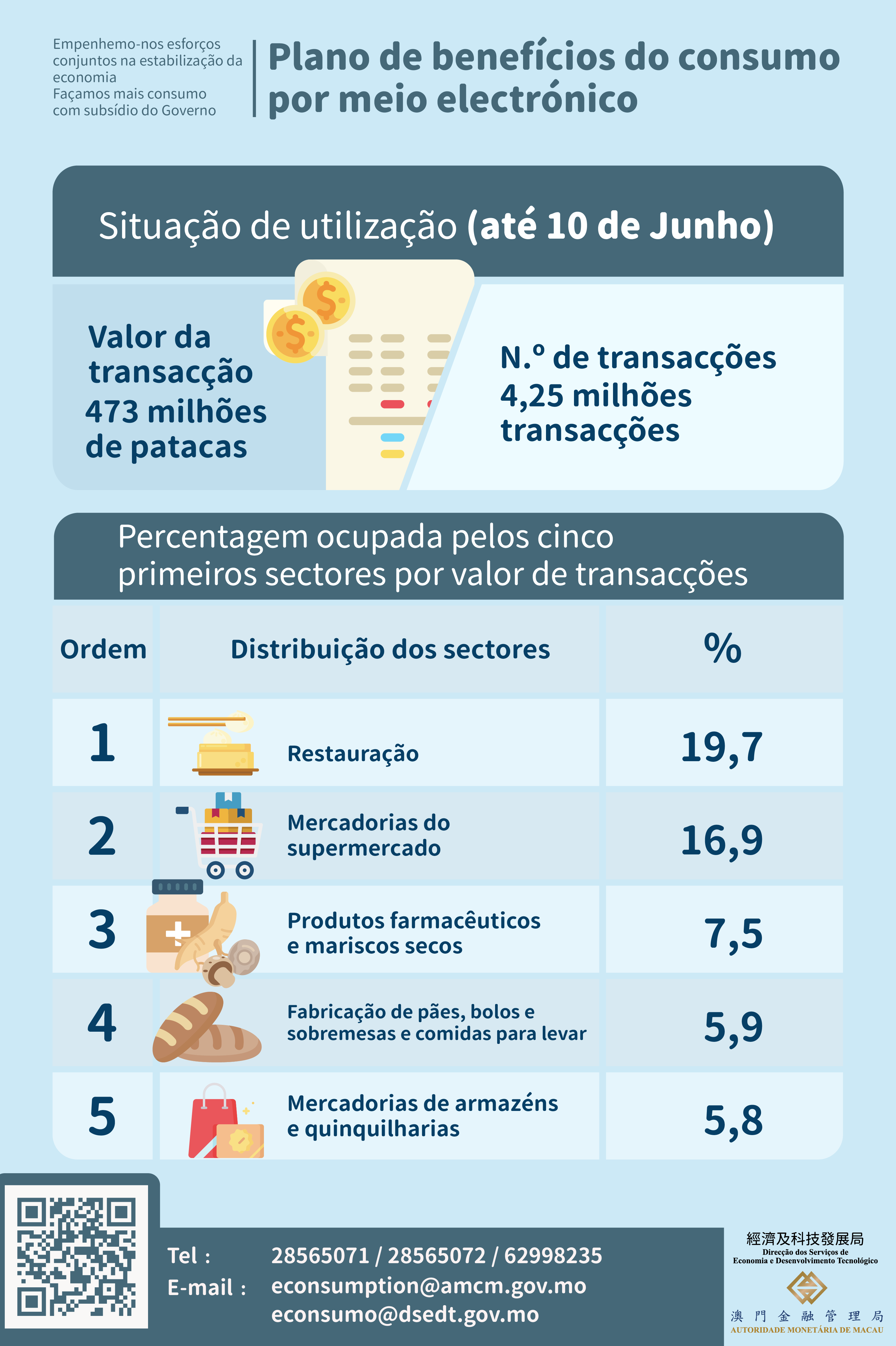 Os “benefícios de consumo por meio electrónico” começaram a utilizar a partir do dia 1 de Junho e, nos primeiros dez dias, realizaram cerca de 4,25 milhões de transacções, totalizando 473 milhões de patacas injectadas no mercado de consumo, e diferentes sectores de actividades económicas foram beneficiados.