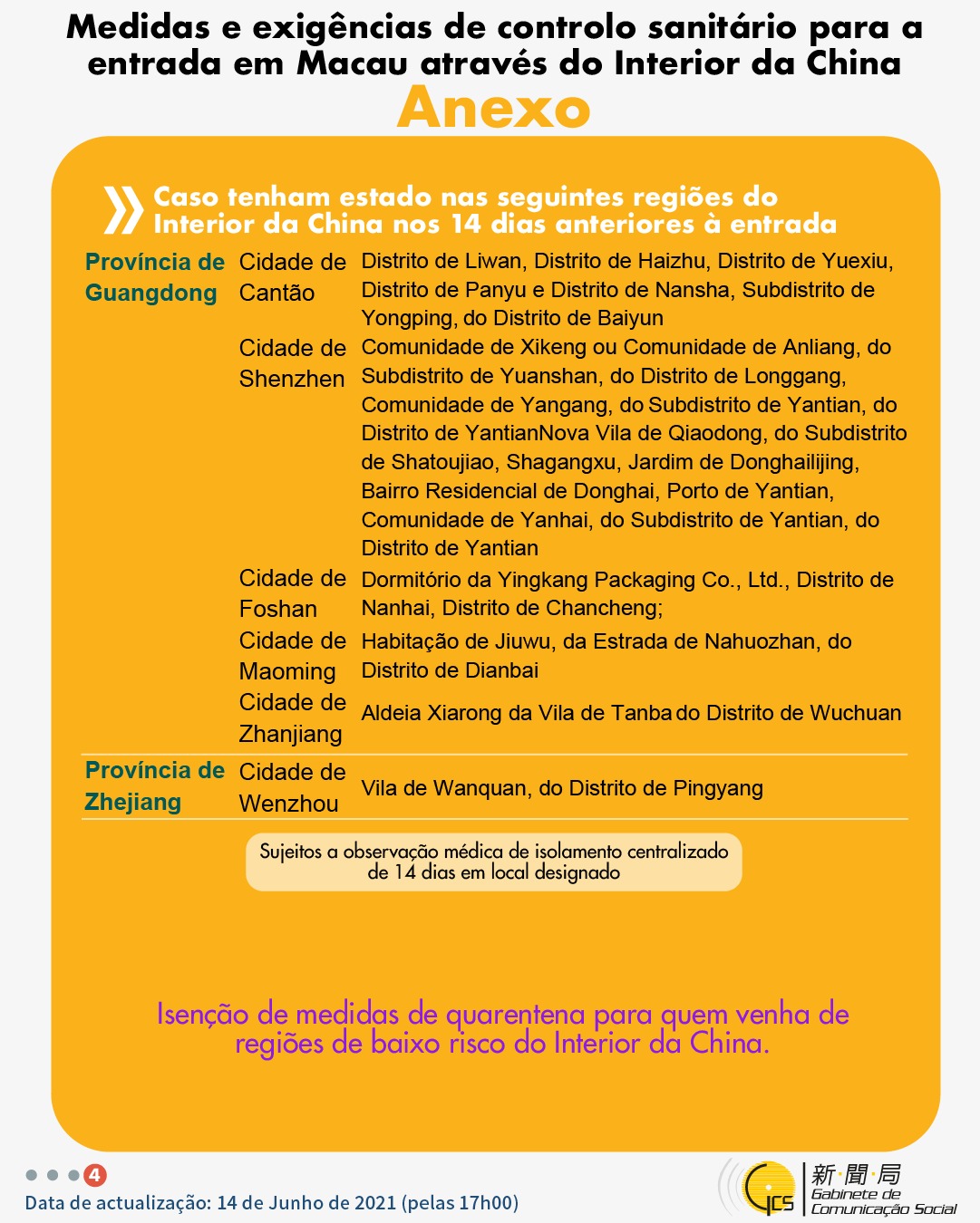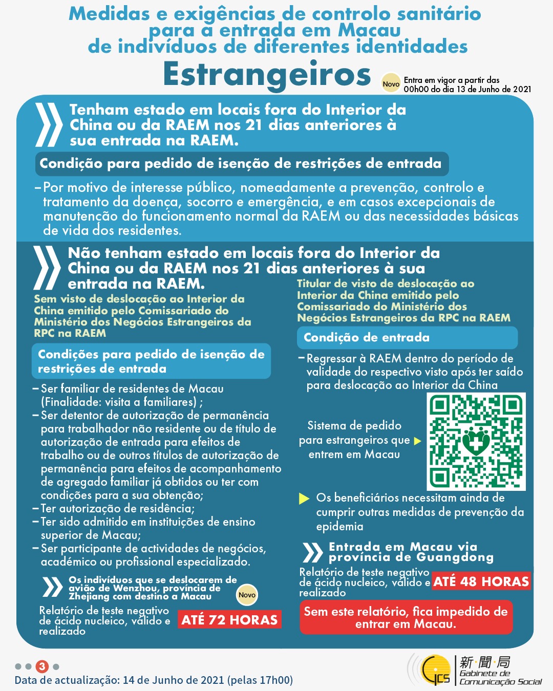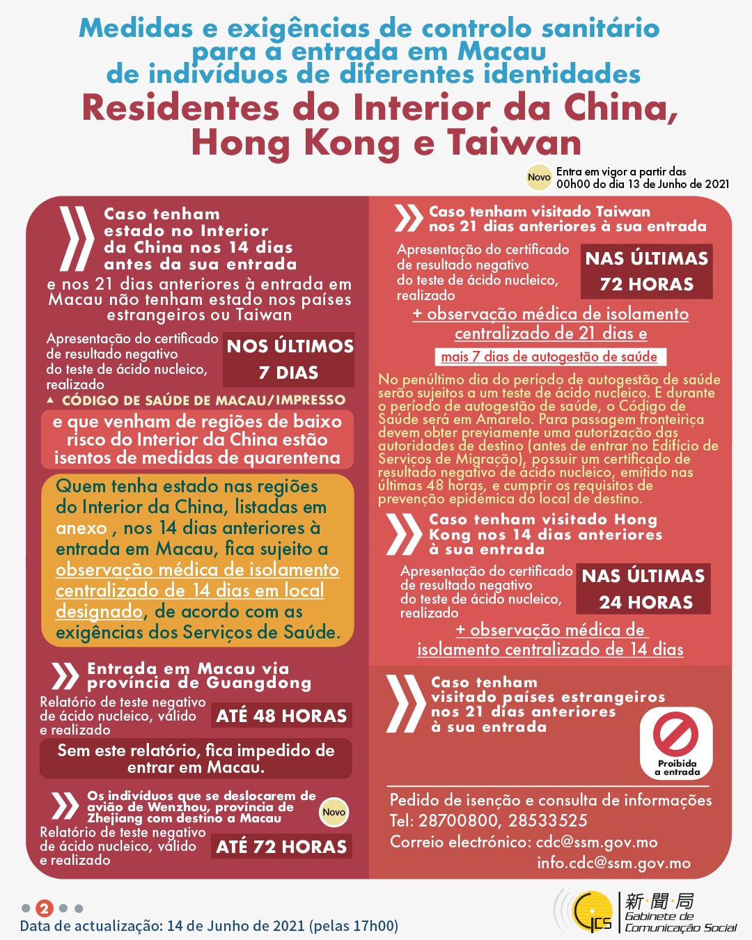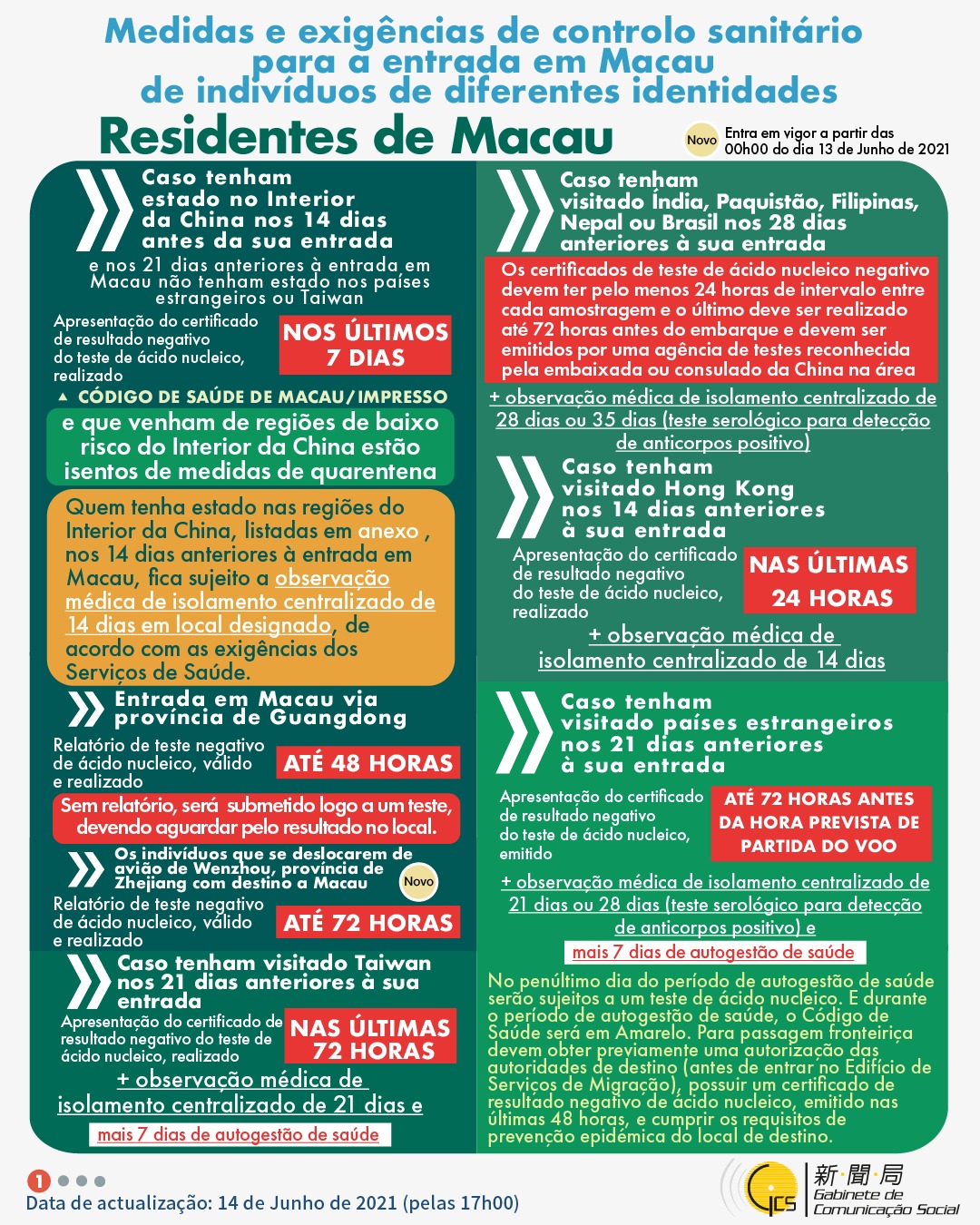 (Infografia)Medidas e exigências de controlo sanitário para a entrada em Macau de indivíduos de diferentes identidades, actualizadas no dia 14 de Junho de 2021