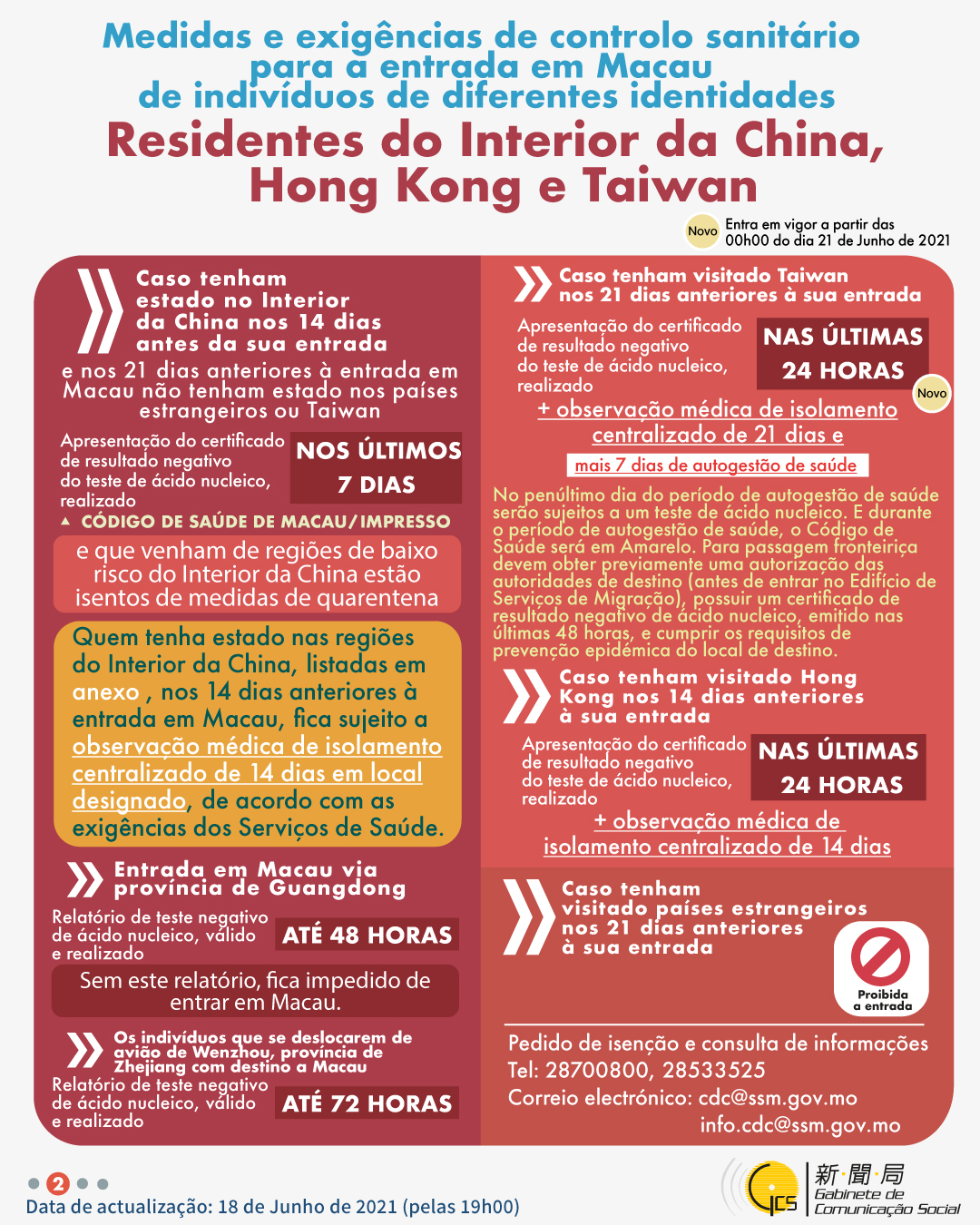 (Infografia)Medidas e exigências de controlo sanitário para a entrada em Macau de indivíduos de diferentes identidades, actualizadas no dia 18 de Junho de 2021