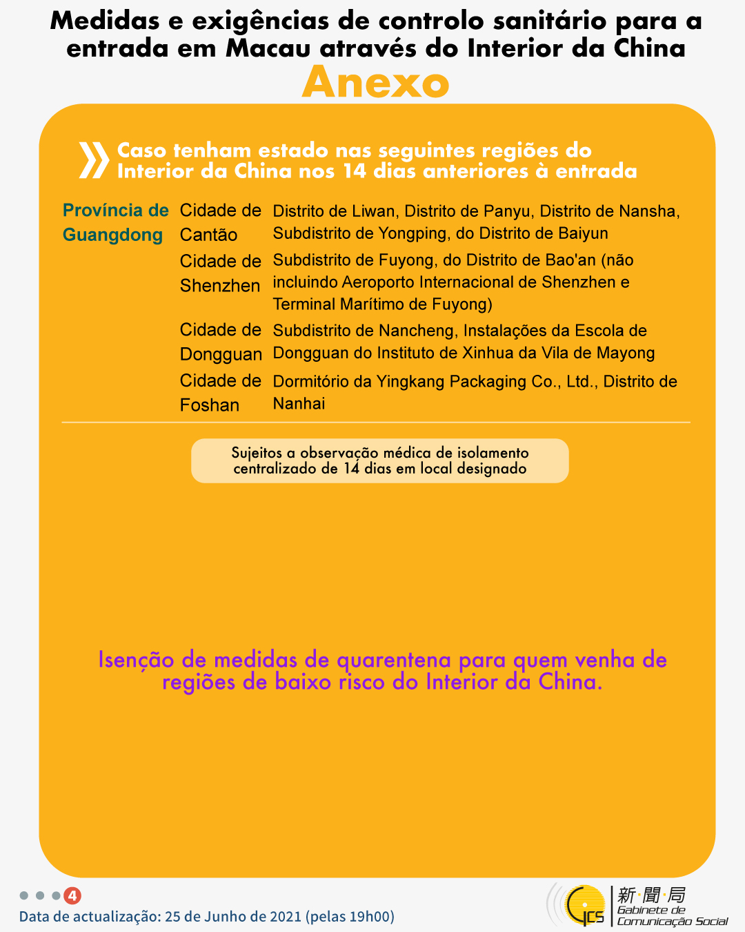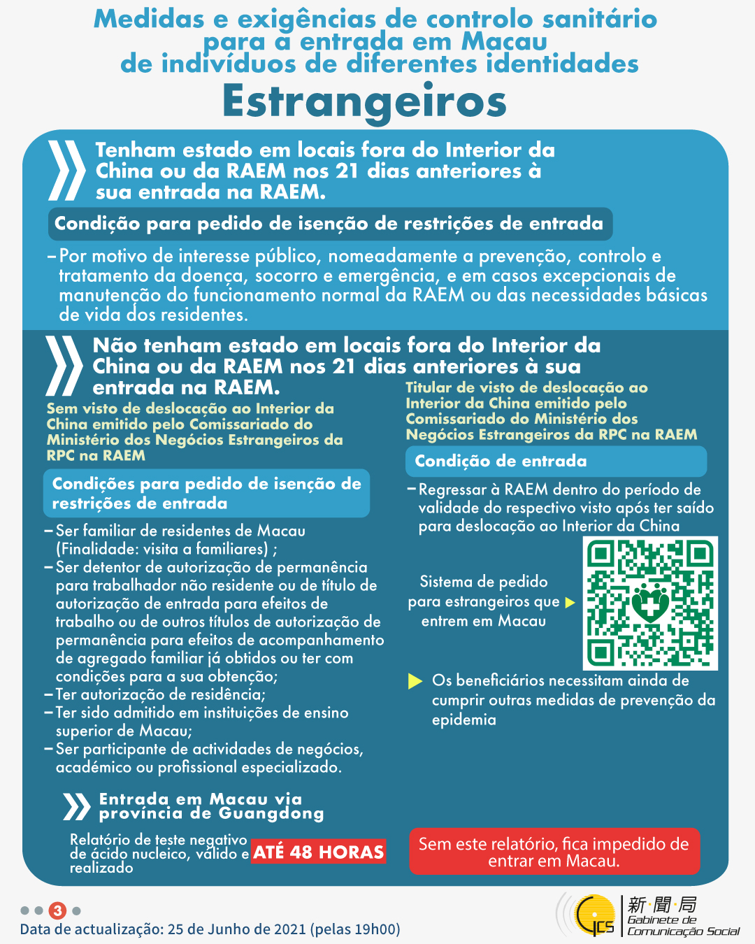 (Infografia)Medidas e exigências de controlo sanitário para a entrada em Macau de indivíduos de diferentes identidades, actualizadas no dia 25 de Junho de 2021