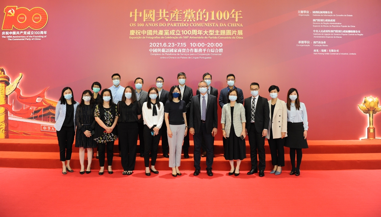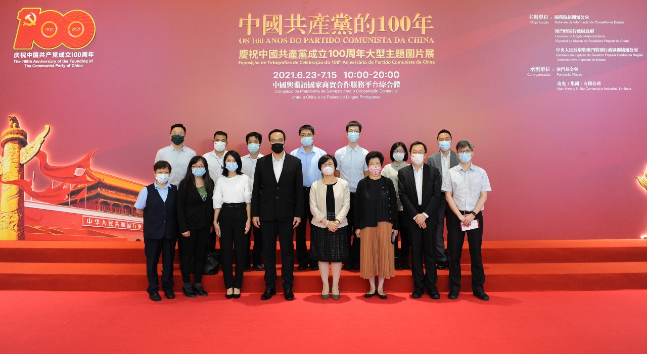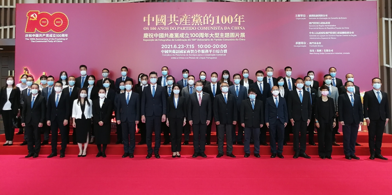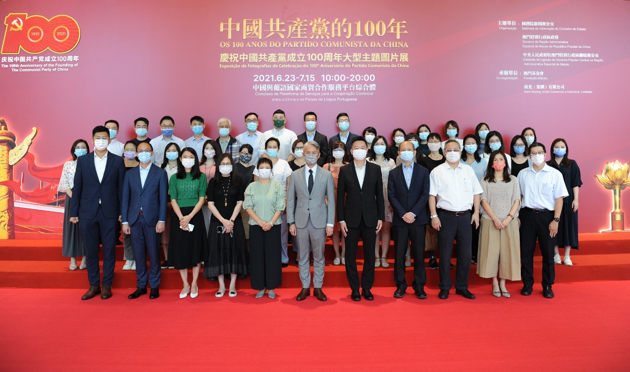 “Os 100 Anos do Partido Comunista da China - Exposição de Fotografias de Celebração do 100.º Aniversário do Partido Comunista da China”, promovida pelo Gabinete de Informação do Conselho de Estado da República Popular da China, pelo Governo da Região Administração Especial de Macau (RAEM) e pelo Gabinete de Ligação do Governo Central na RAEM, e organizada pela Fundação Macau e pela Nam Kwong União Comercial e Industrial, Limitada, encontra-se patente ao público no Complexo da Plataforma de Serviços para a Cooperação Comercial entre a China e os Países de Língua Portuguesa. A exposição mostra a magnífica história da luta do Partido Comunista da China ao longo do último século e permite a toda a sociedade conhecer como a nação chinesa escreveu um capítulo glorioso na história da civilização chinesa sob a direcção do Partido Comunista da China.