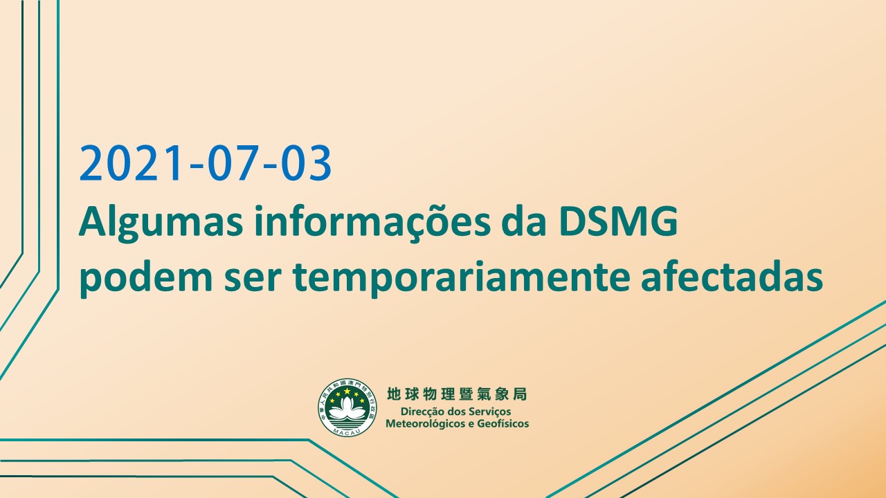Devido a um projecto de optimização no sistema de energia da DSMG, a divulgação de algumas das informações será temporariamente afectada amanhã (dia 3). Esta Direcção ajustará o arranjo do projecto de actualização de acordo com as mais recentes condições meteorológicas, e foi estabelecido um plano de emergência para minimizar o impacto nos serviços.