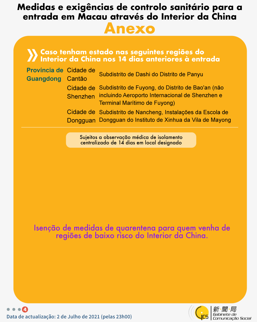 (Infografia)Medidas e exigências de controlo sanitário para a entrada em Macau de indivíduos de diferentes identidades, actualizadas no dia 2 de Julho de 2021