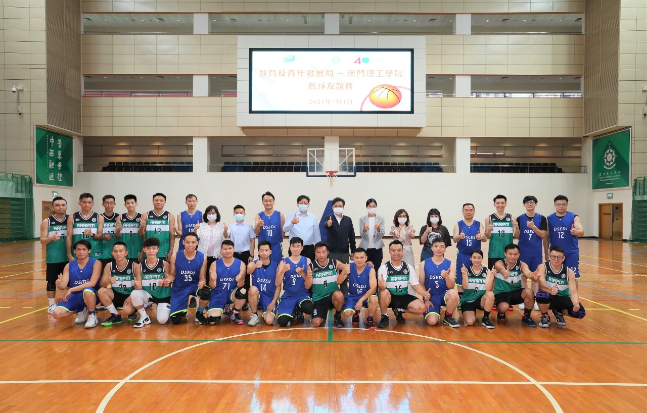 Para melhorar a capacidade física e psicológica dos jovens e dos estudantes universitários, bem como promover o estilo de vida saudável e estimular a geração mais jovem a participar em actividades extracurriculares diversificadas, a Direcção dos Serviços de Educação e de Desenvolvimento da Juventude (DSEDJ) do Governo da RAEM e o Instituto Politécnico de Macau (IPM) organizaram um jogo amigável de basquetebol. A equipa do IPM, constituída por alunos, antigos alunos, professores e trabalhadores do mesmo Instituto, fez um jogo de basquetebol admirável com a equipa da DSEDJ, tendo conseguido a coesão dos membros da equipa e o estabelecimento de amizade entre as duas equipas, motivando o intercâmbio e as relações amigáveis entre as duas partes e gerando um ambiente perfeito de transmissão de energia positiva. O Director da DSEDJ, Lou Pak Sang, e o Presidente do IPM, Im Sio Kei, estiveram presentes no campo a apoiar as respectivas equipas, daí resultando um ambiente dinâmico e alegre.