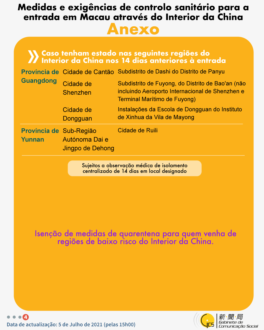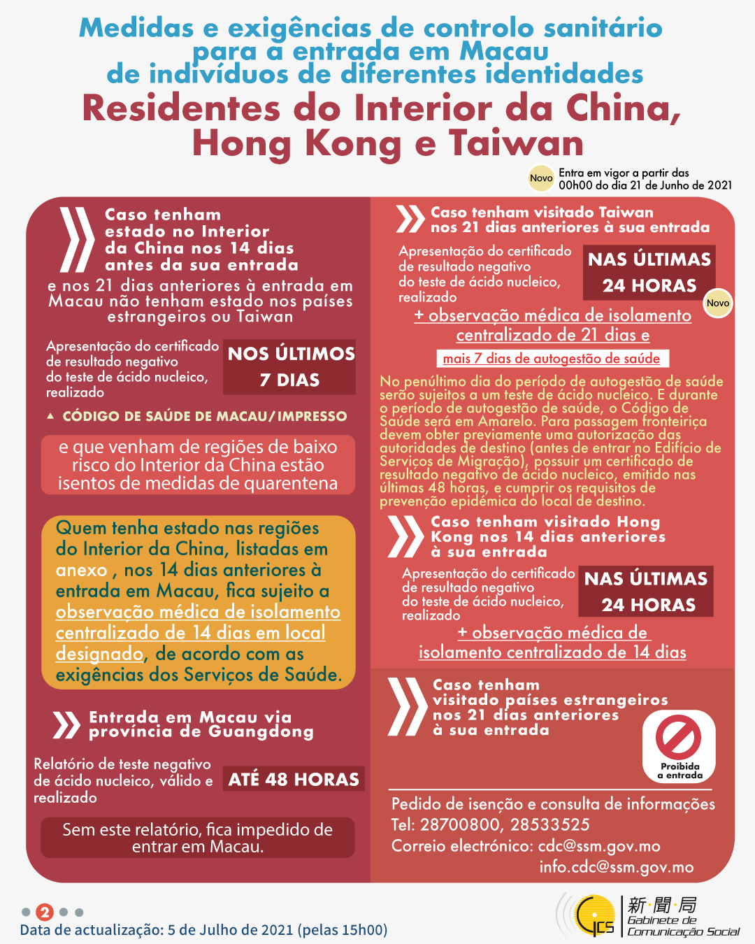 (Infografia)Medidas e exigências de controlo sanitário para a entrada em Macau de indivíduos de diferentes identidades, actualizadas no dia 5 de Julho de 2021