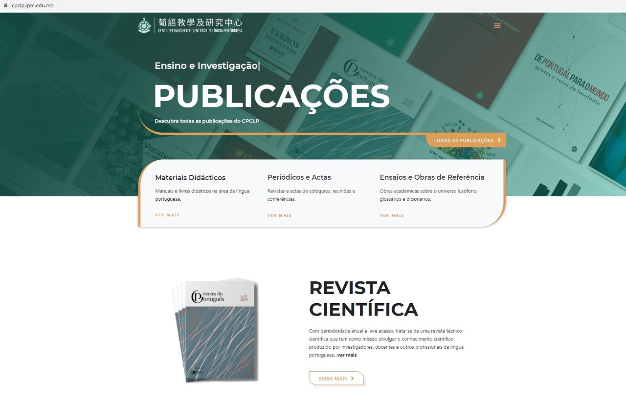 Com vista a promover a construção de Macau como Plataforma Sino-Lusófona e como Base de Formação de Quadros Bilingues em Chinês e Português, divulgar os resultados científicos do português e dos respectivos domínios de Macau na Grande Baía Guangdong-Hong Kong-Macau e nos Países Lusófonos abrangidos pela iniciativa “Uma Faixa, Uma Rota”, bem como para incentivar a partilha de recursos digitais do ensino e da investigação da língua portuguesa, o Centro Pedagógico e Científico da Língua Portuguesa (CPCLP) do Instituto Politécnico de Macau (IPM) lançou online, no ano passado, o material didáctico Português Global, e a revista académica Orientes do Português, tendo sido bem recebidos pelos aprendentes de português. A fim de continuar a promover o processo de digitalização dos materiais didácticos da língua portuguesa, o Centro lança agora a plataforma online de materiais didácticos de português e de obras académicas sino-lusófonas (https://cpclp.ipm.edu.mo/), disponíveis gratuitamente.
