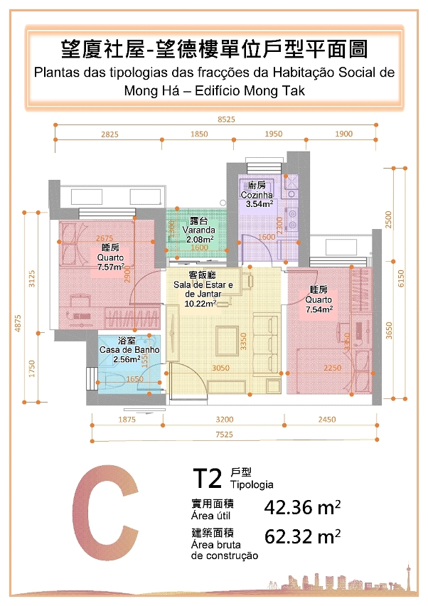 O Edifício Mong Tak, sita na Rua de Francisco Xavier Pereira de Macau é composto por 37 andares e 3 pisos em cave, comportando um total de 768 fracções de T1 e T2, distribuídas pelas 256 fracções de tipologia T1 e 512 fracções de tipologia T2. A área das fracções de T1 é de 35,92 m2 e das fracções de T2 é de 42,36 a 45,48 m2.
