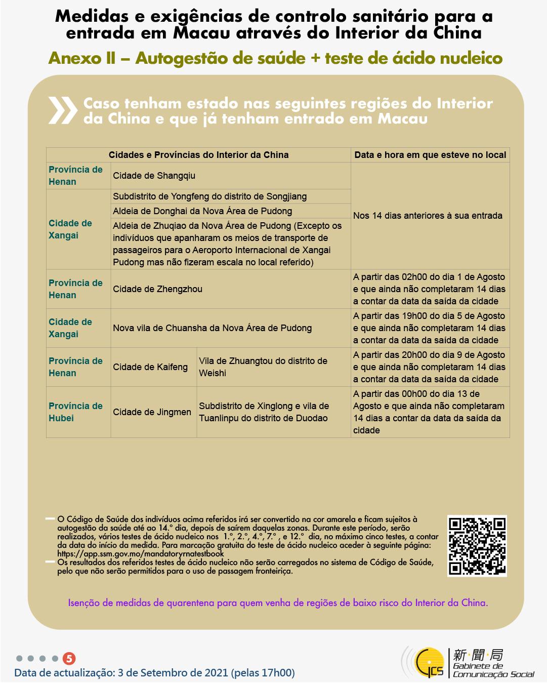 (Infografia)Medidas e exigências de controlo sanitário para a entrada em Macau de indivíduos de diferentes identidades, actualizadas no dia 3 de Setembro de 2021