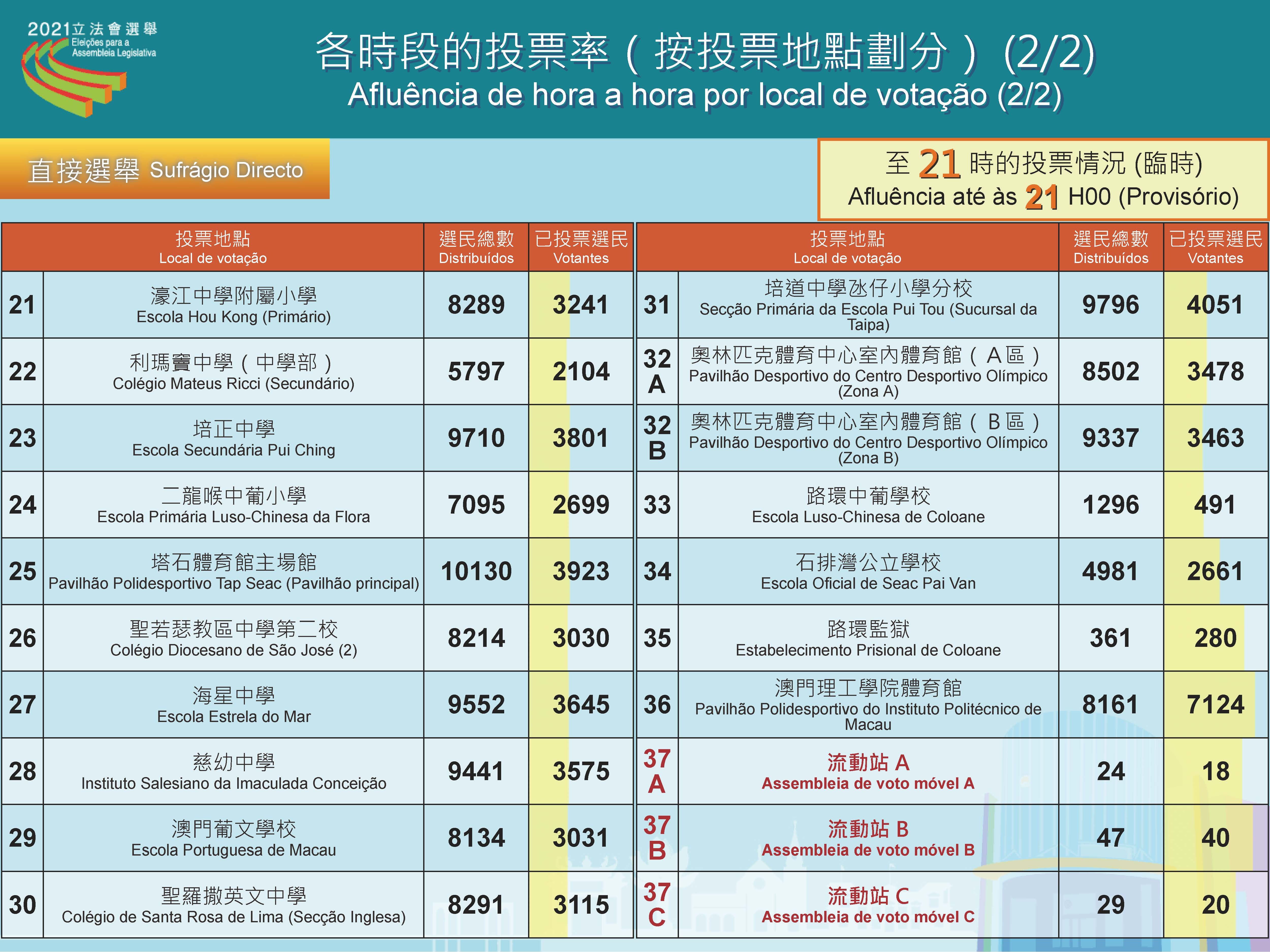 • Taxa de afluência até às 21h00 (provisório)