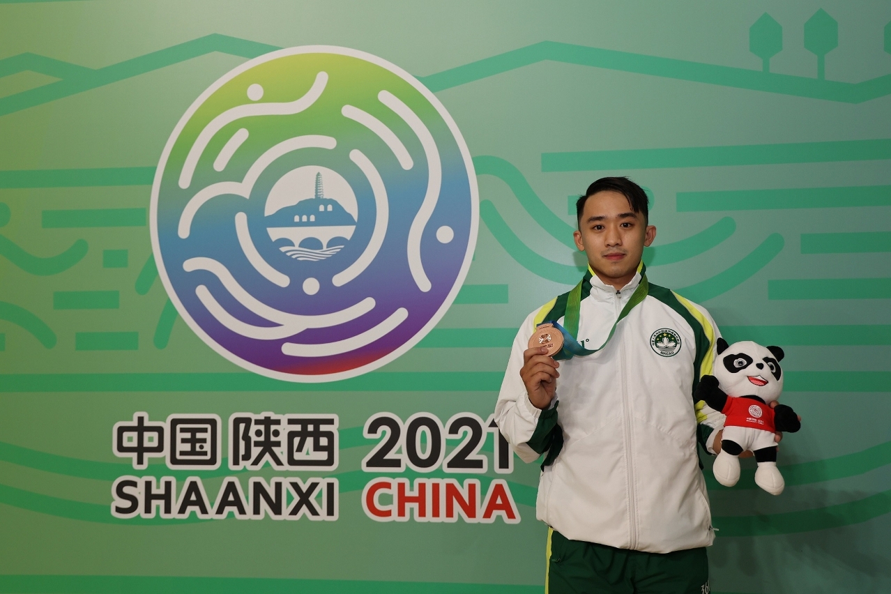 A delegação desportiva da RAEM está a participar nos 14.ºs Jogos Nacionais da República Popular da China na cidade Xian da província Shaanxi. Hoje (dia 18) o atleta de karate-do de Macau, Kuok Kin Hang, obteve o resultado de 25.02 na modalidade de kata individual masculino e conquistou a medalha de bronze, sendo a primeira medalha que a delegação de Macau conseguiu obter nos Jogos Nacionais desta edição, assim como a primeira medalha que Macau conseguiu obter desde a participação nos Jogos Nacionais.