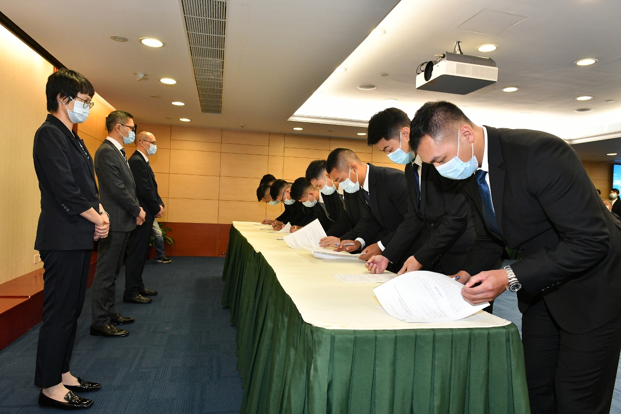 Após o evento, realizou-se a cerimónia de assinatura do contrato de investigador criminal estagiário e os 40 assinaram perante o director, Sit Chong Meng, e dos subdirectores, Tou Sok Sam e Chan Kin Hong. Conforme o estipulado, para se tornarem investigadores criminais de 2ª classe, os investigadores criminais estagiários devem dominar as técnicas de investigação dentro do período de estágio de um ano e serem aprovados na entrevista final.