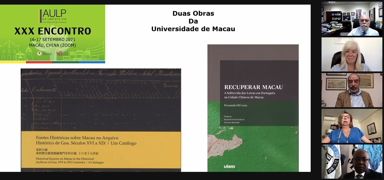A Universidade de Macau (UM) organizou online a 30.ª reunião anual da Associação das Universidades de Língua Portuguesa (AULP), cujo tema foi o “Diálogo de Culturas e Promoção do Ensino da Língua Portuguesa na China”. A reunião contou com a presença de membros do Conselho Executivo da AULP e de representantes de Universidades de Língua Portuguesa, provenientes de Macau e de oito países. Além disso, na mesma ocasião, o Prof. Dr. Rui Martins foi nomeado membro honorário da AULP, pela sua dedicação significativa à Associação ao longo dos anos.