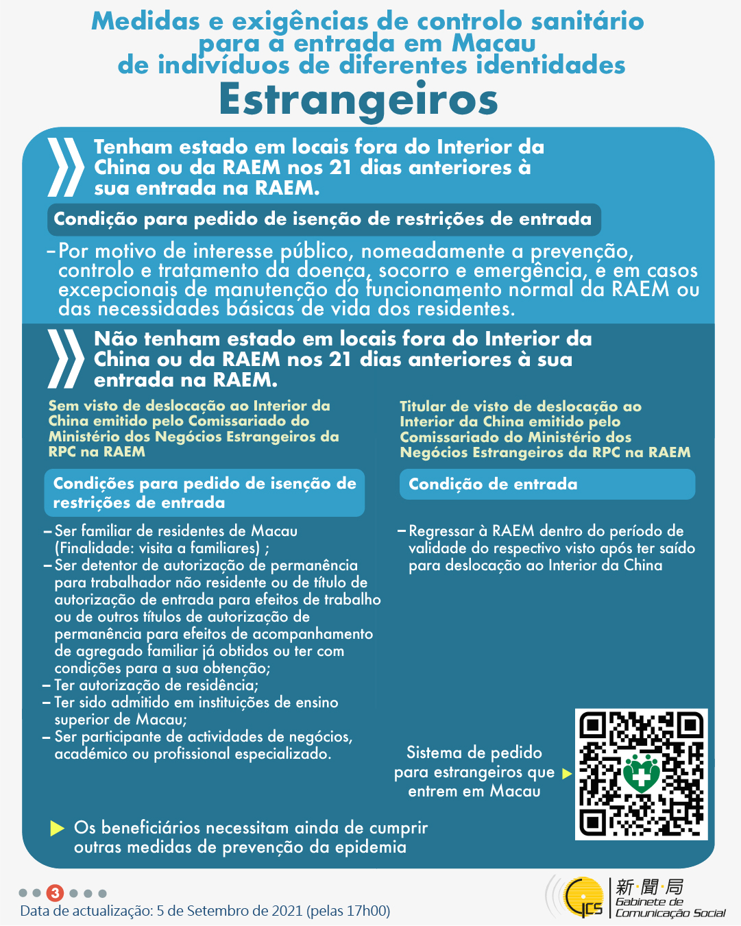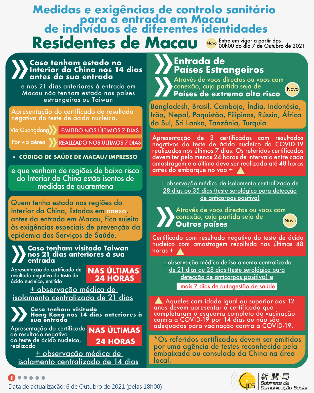 • Medidas mais recentes de entrada e saída de Macau - actualização de 6 de Outubro
