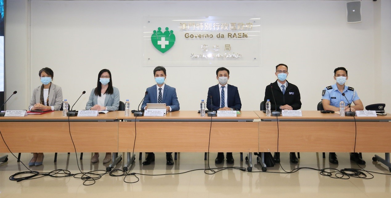 Estiveram presentes na conferência de imprensa: o Médico-Adjunto da Direcção do Centro Hospitalar Conde de São Januário, Dr. Tai Wa Hou, o Chefe do Departamento do Ensino Não Superior dos Serviços de Educação e de Desenvolvimento da Juventude, Dr. Wong Ka Ki, o Chefe da Divisão de Ligação de Assuntos Policiais e Relações-Públicas dos Serviços de Polícia Unitários, Dr. Cheong Kin Ian, o Chefe da Divisão de Ligação entre Polícia e Comunidade e Relações Públicas, Dr. Lei Tak Fai, a Chefe da Divisão de Relações Públicas da Direcção dos Serviços de Turismo, Dr.ª Lam Tong Hou e a Coordenadora do Núcleo de Prevenção de Doenças Infecciosas e Vigilância de Doença do Centro de Prevenção e Controlo da Doença dos Serviços de Saúde, Dr.ª Leong Iek Hou.
