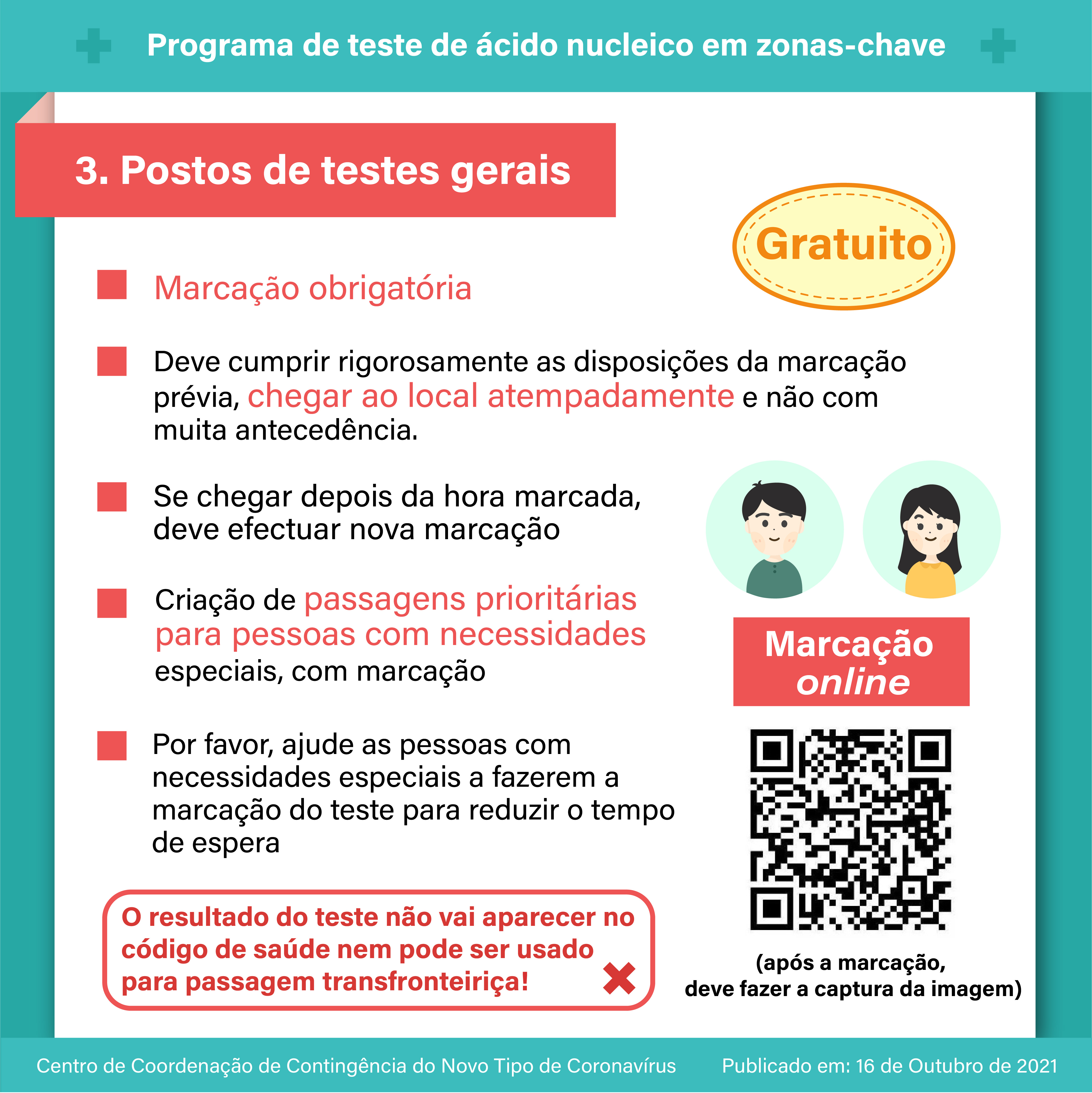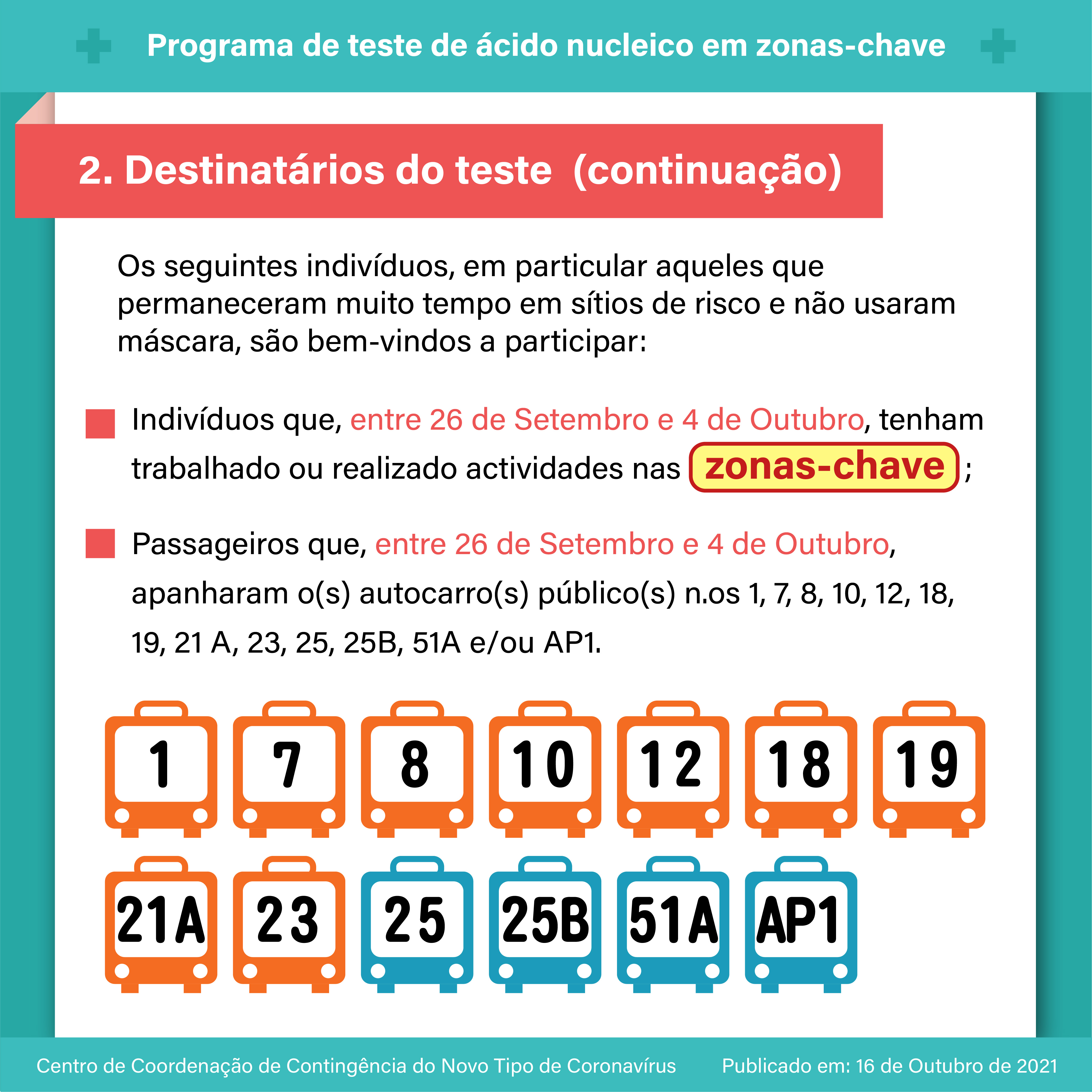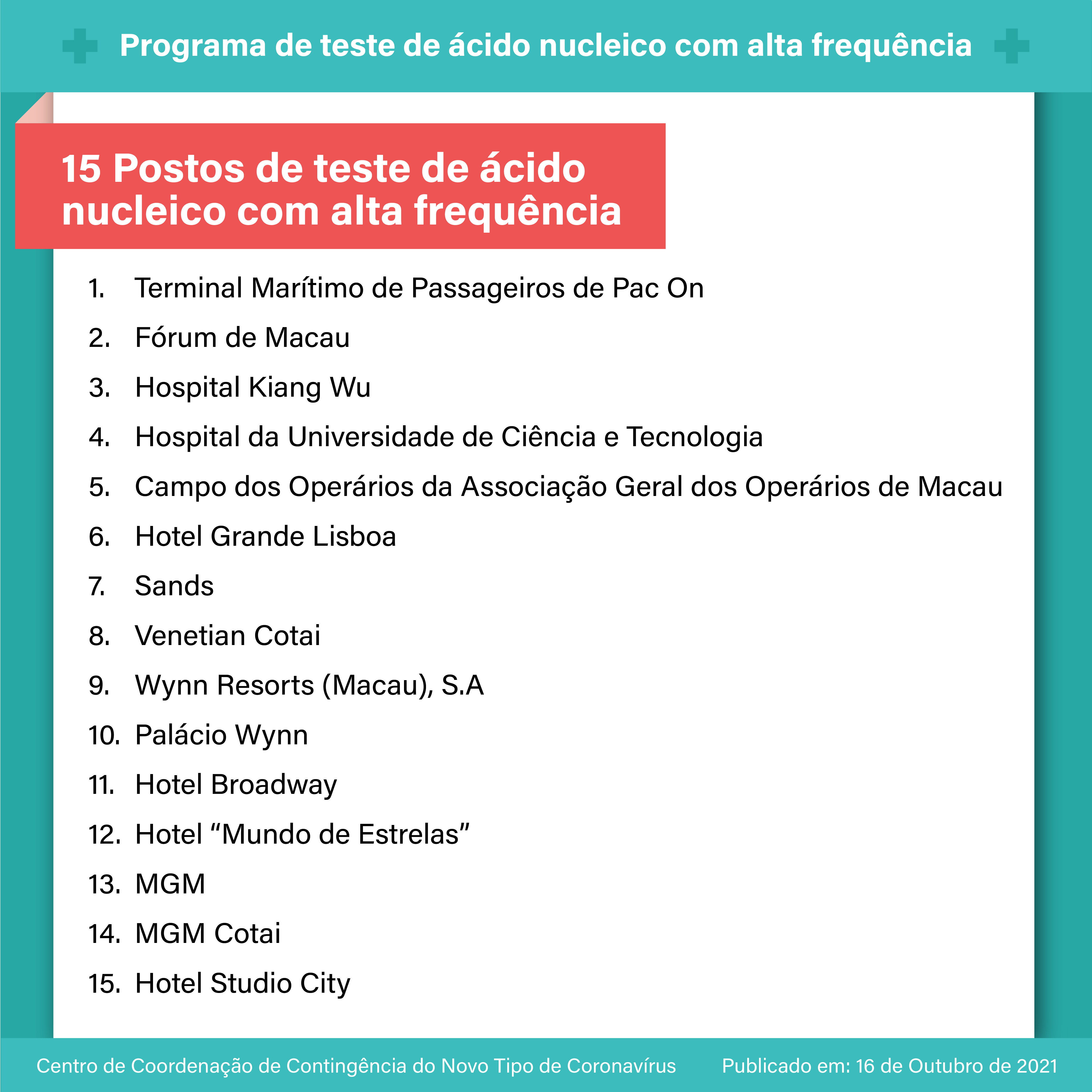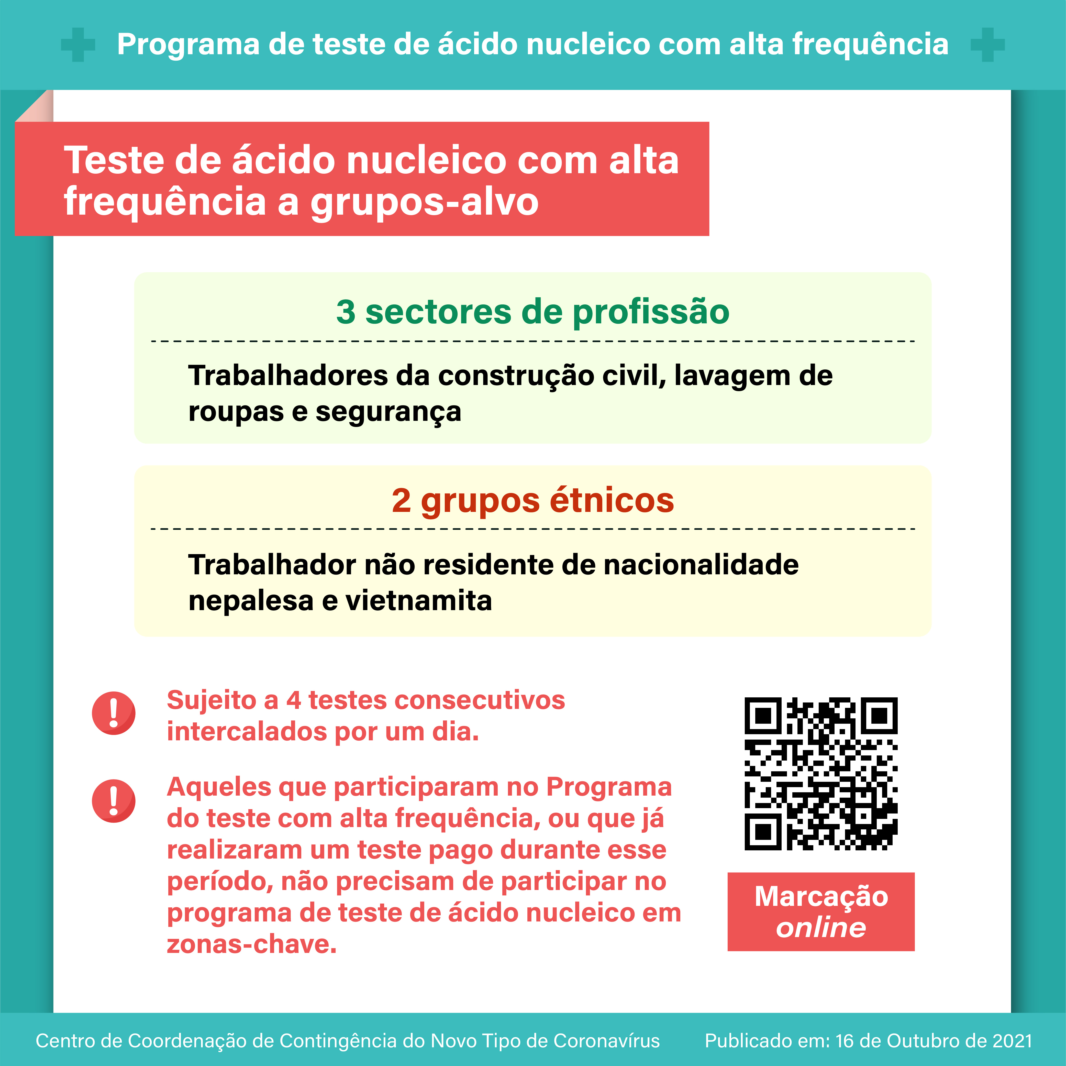 【Infografia】: O programa de teste de ácido nucleico em zonas-chave terá início no dia 17 de Outubro
