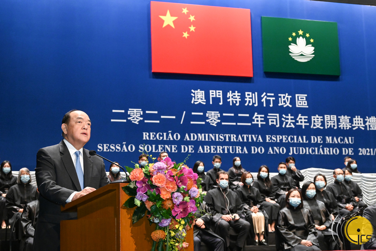 O Chefe do Executivo da Região Administrativa Especial de Macau (RAEM), Ho Iat Seng, ao discursar, hoje (20 de Outubro), na sessão solene de abertura do Ano Judiciário de 2021/2022, afirmou que o Estado de Direito é um dos princípios basilares de Macau e para solidificar este valor nuclear, é imperioso defender firmemente a dignidade e a autoridade da Constituição e da Lei Básica. Indicou que os órgãos judiciais, no estrito cumprimento dos deveres constitucionais consagrados na Lei Básica, têm contribuído de forma ímpar para o sucesso da aplicação do princípio «um país, dois sistemas» em Macau.