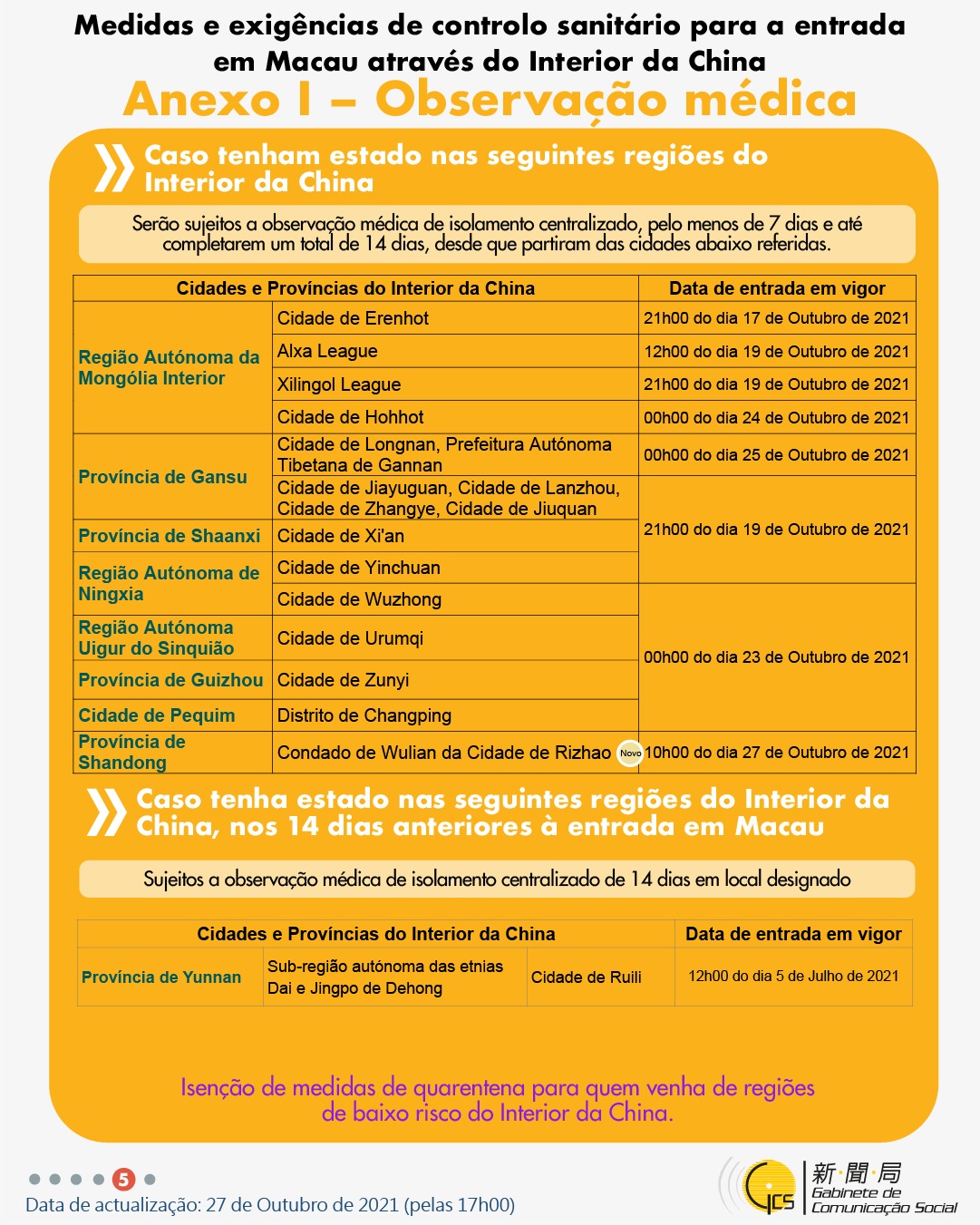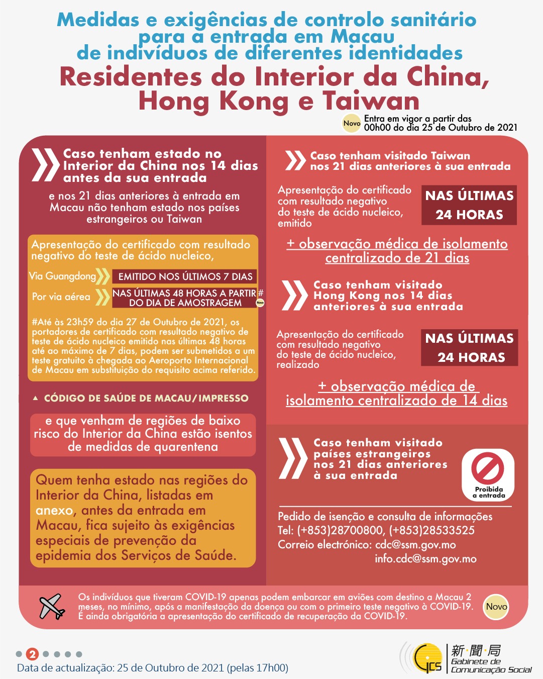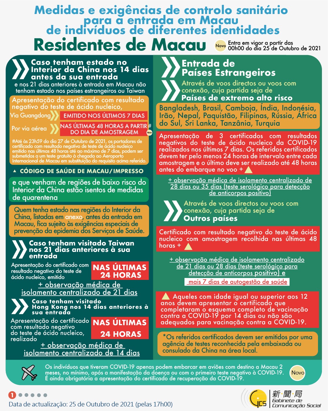 (Infografia)Medidas e exigências de controlo sanitário para a entrada em Macau de indivíduos de diferentes identidades, actualizadas no dia 27 de Outubro de 2021