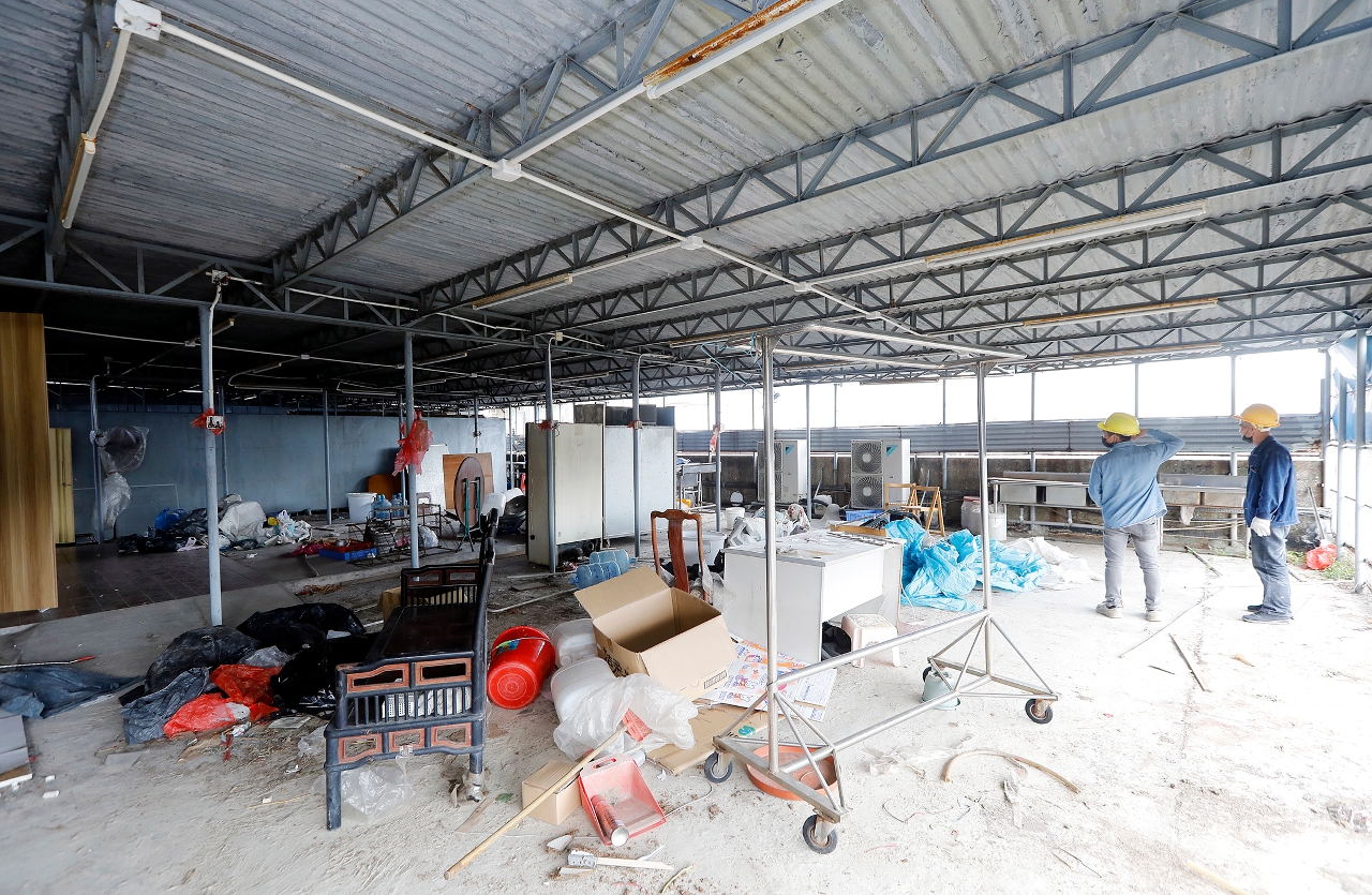 Relativamente ao primeiro caso, a construção ilegal estava a decorrer no corredor público da entrada e saída de uma fracção habitacional do piso mais alto e no terraço do edifício. Os funcionários da DSSOPT inspeccionaram e verificaram que o referido corredor público e parte do terraço tinham sido ocupados e vedados e neles depositados mobiliários e equipamentos. Assim, a DSSOPT emitiu de imediato a ordem de embargo, avisou o proprietário mediante ofício e publicou o edital nos jornais para o notificar do início do procedimento de audiência, exigindo-lhe a demolição da construção ilegal por iniciativa própria e a reposição dos locais afectados. O infractor chegou a requerer a demolição por iniciativa própria e apresentar à DSSOPT o requerimento de conclusão da obra. No entanto, os funcionários da DSSOPT confirmaram que apenas foi demolida uma parte da construção ilegal, sendo assim, o Grupo realizou de imediato a acção de demolição.