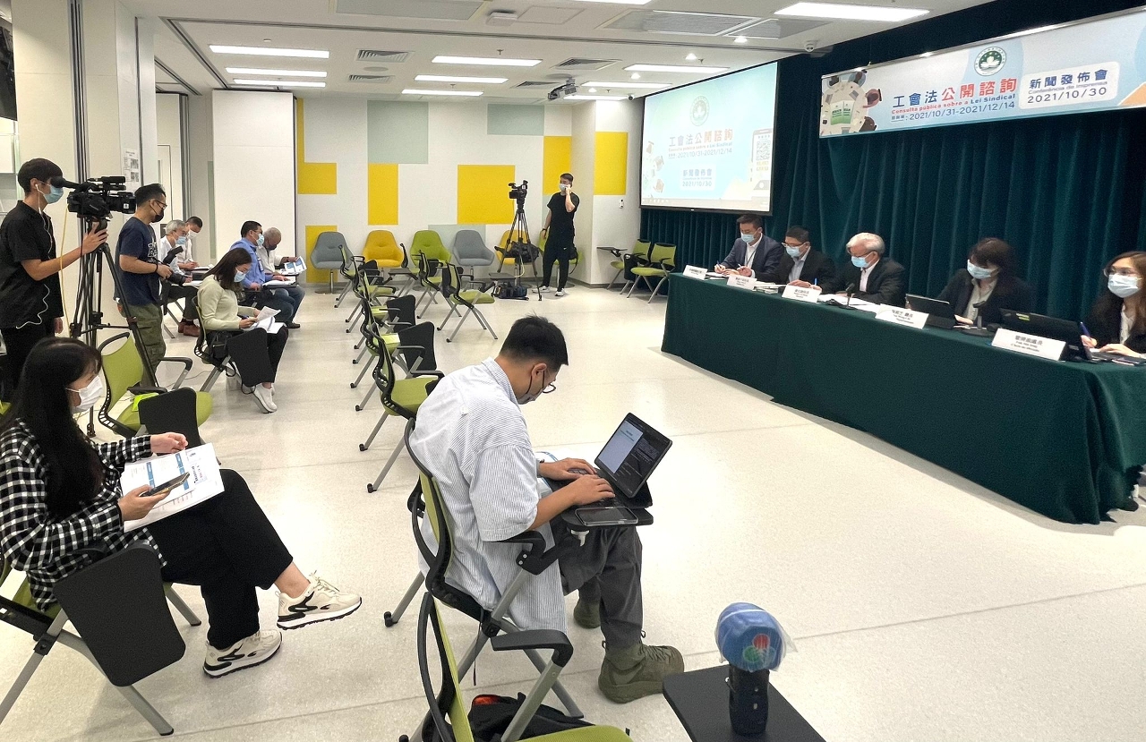 Hoje (dia 30) o Governo da Região Administrativa Especial de Macau (doravante designada por RAEM) realizou uma conferência de imprensa e anunciou que irá realizar a consulta pública sobre a Lei Sindical por um período de 45 dias, entre os dias 31 de Outubro e 14 de Dezembro, e nesse período da consulta realizará quatro sessões de consulta para ouvir as opiniões do público.