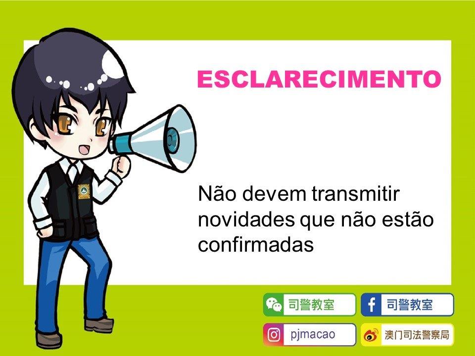 Para receber informações actualizadas sobre prevenção criminal, a população deve confirmar as fontes através dos meios oficiais ou da informação policial, pode ainda seguir a página ou conta oficial da PJ nas várias plataformas online. Não deve transmitir informações que não estão confirmadas, evitando causar qualquer angústia ou pânico.
