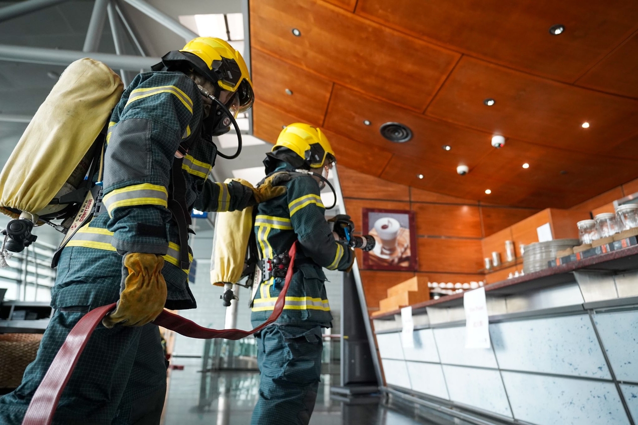 O exercício simulou um incêndio num salão de café situado no 4.º andar do Centro de Convenções e Entretenimento da Torre de Macau, provocado pelo curto-circuito dos cabos eléctricos do fogão electromagnético. Ao tentar apagar o incêndio, um trabalhador ficou queimado, o outro empregado caiu acidentalmente e ficou ferido durante o período de evacuação. Depois de os funcionários da Torre de Macau terem descoberto o incêndio, activaram imediatamente o plano de emergência, ligaram para o CB, evacuaram os trabalhadores para o lugar de encontro de evacuação e adoptaram uma série de medidas de emergência e contingência. Após o alarme, o CB enviou logo 6 veículos de socorro e 23 bombeiros para acorrerem ao local, no sentido de efectuar os trabalhos de evacuação, extinção do fogo e socorro, bem como proceder à enfermagem preliminar junto dos dois feridos e à simulação de transporte para o hospital para o tratamento.