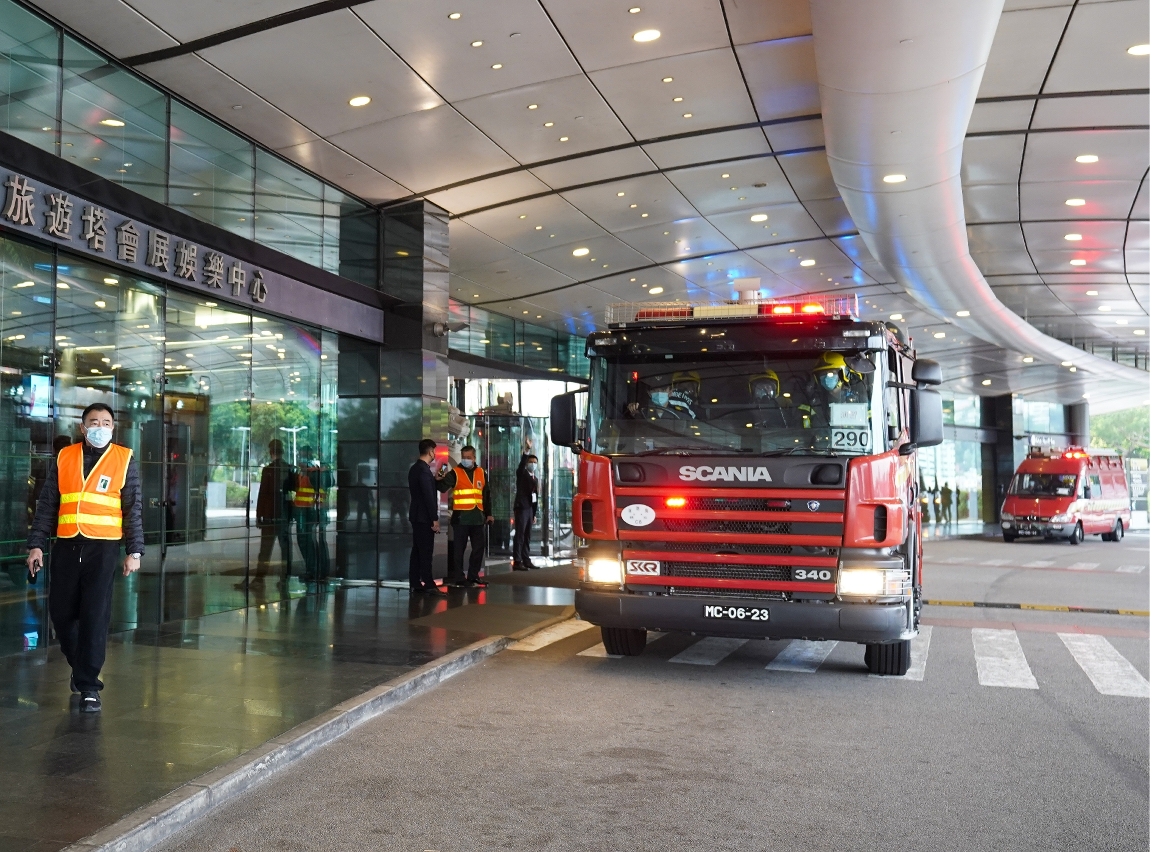 O Corpo de Bombeiros (CB) realizou, na manhã do dia 23 de Novembro do corrente ano, um simulacro de incêndio e evacuação em conjunto com a Torre de Macau, de modo a intensificar as capacidades de resposta, tratamento, comunicação e coordenação da Torre de Macau em caso de incidente.