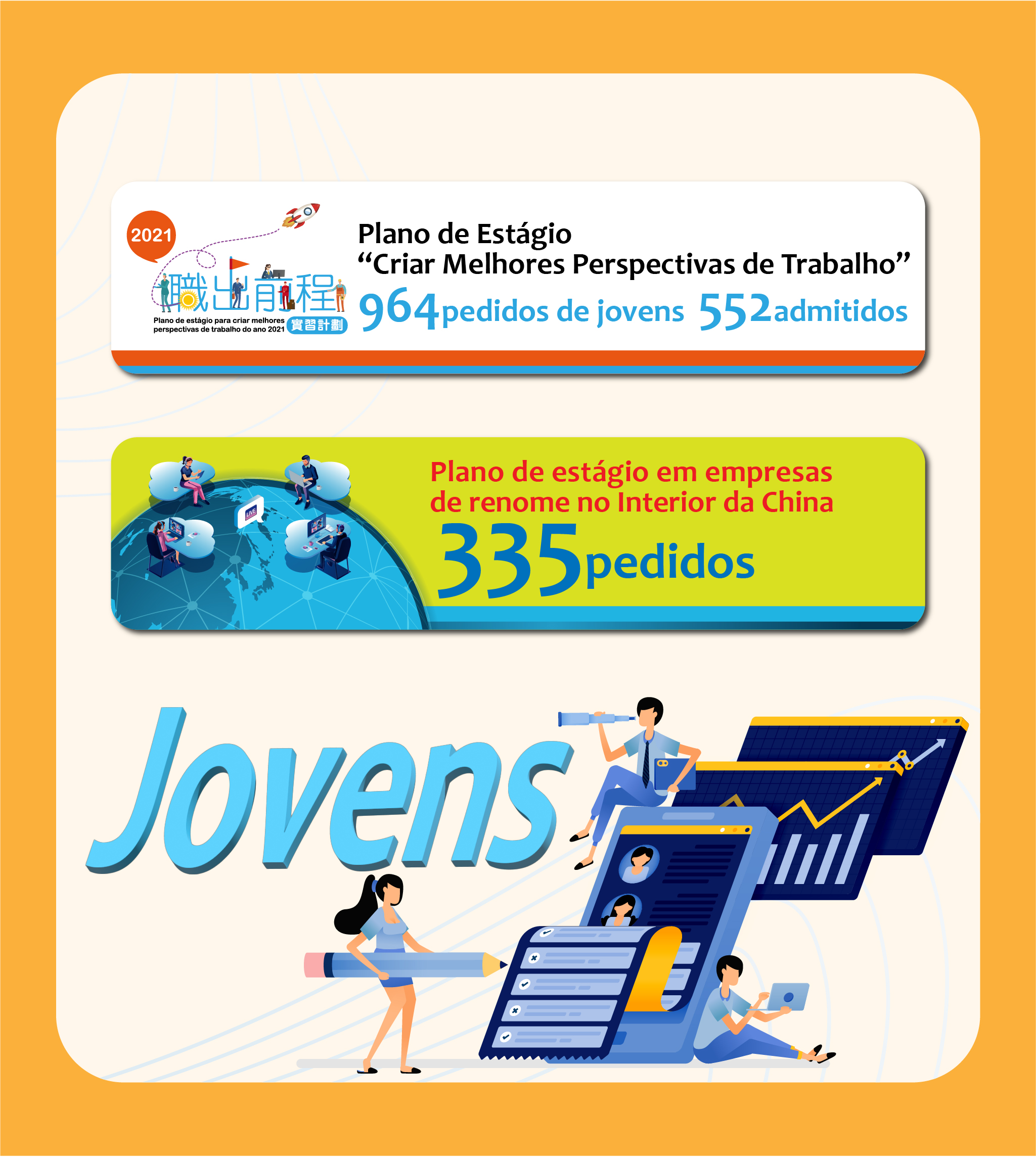 Plano de Estágio “Criar Melhores Perspectivas de Trabalho 2021” dá importância à vida profissional dos jovens, tendo 108 jovens sido contratados